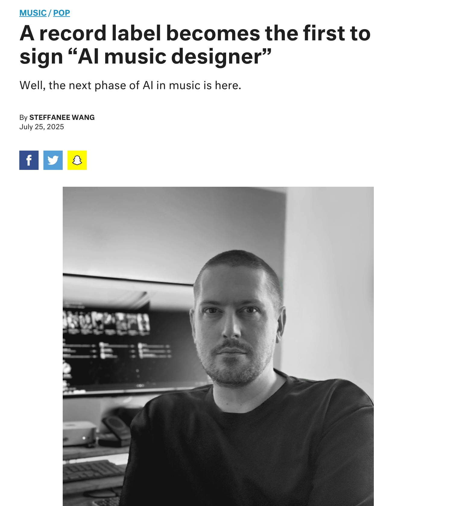 “A huge moment, not just for me, but for the future of music”: AI ‘creator’ signs record deal with Hallwood Media