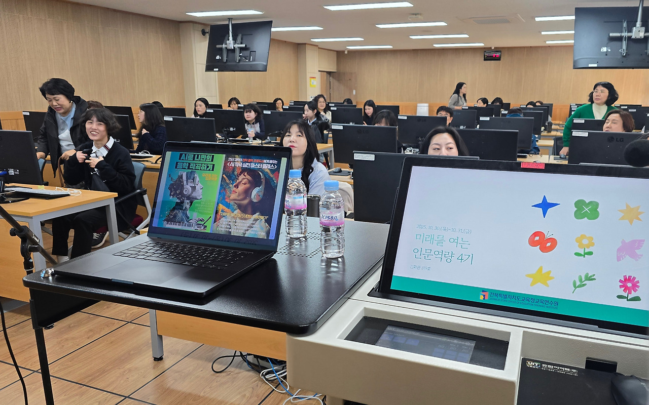지난 10월, 2회에 걸쳐 익산에 위치한 전북특별자치도교육청 교육연수원에서 '미래를 여는 인문역량 3기, 4기'의 과정으로 <AI로 나만의 음악 작곡하기> 워크숍을 진행했습니다.