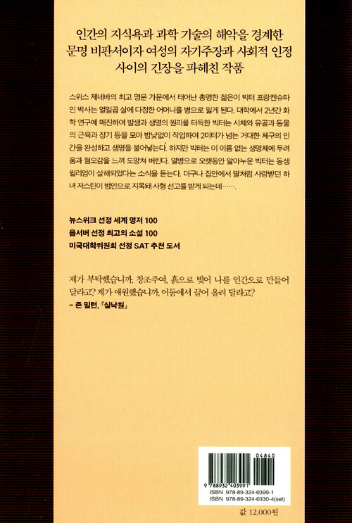 프랑켄슈타인을 을유판/초판본(더스토리)으로 2번이나 읽고,