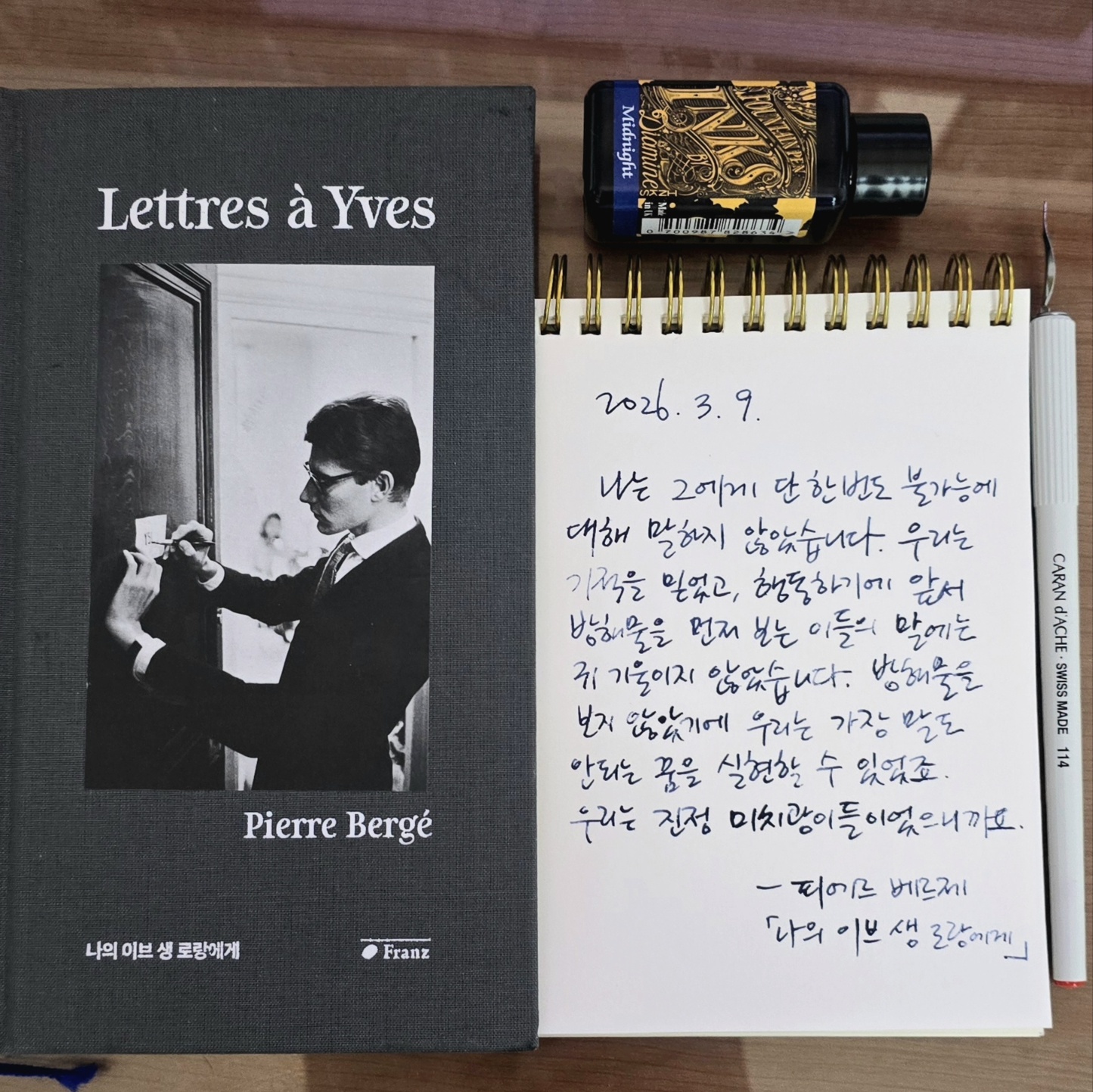 #피에르베르제 #나의이브생로랑에게 #항암치료종료 #오늘의문장 #손글씨 #딥펜 #마이마르스 #나의화성 #mymars