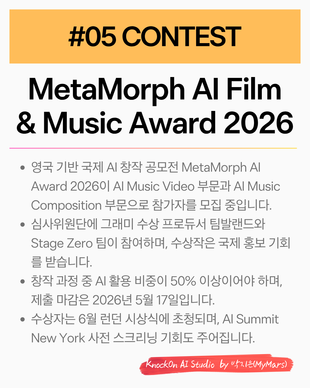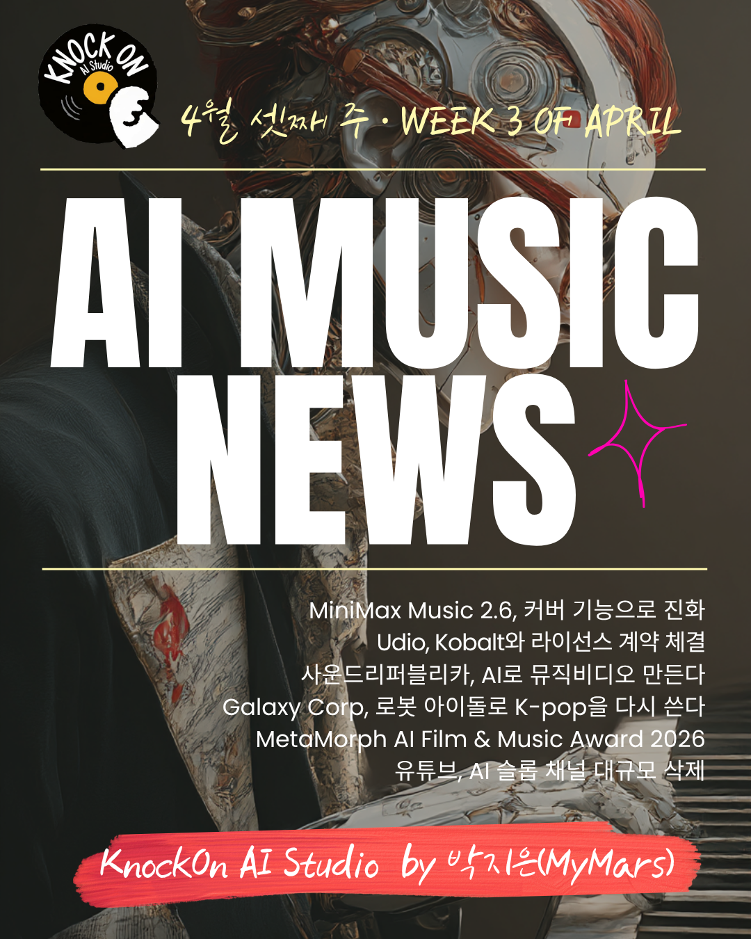 | [AI MUSIC NEWS] AI 음악 전문 스튜디오 '노크온 AI Studio' (0) | 2026.03.25 |