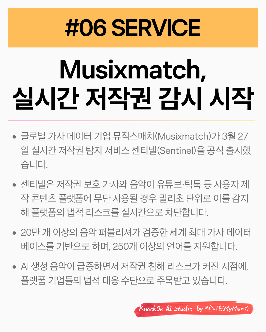 | [AI MUSIC NEWS] AI 음악 전문 스튜디오 '노크온 AI Studio' (0) | 2026.03.25 |