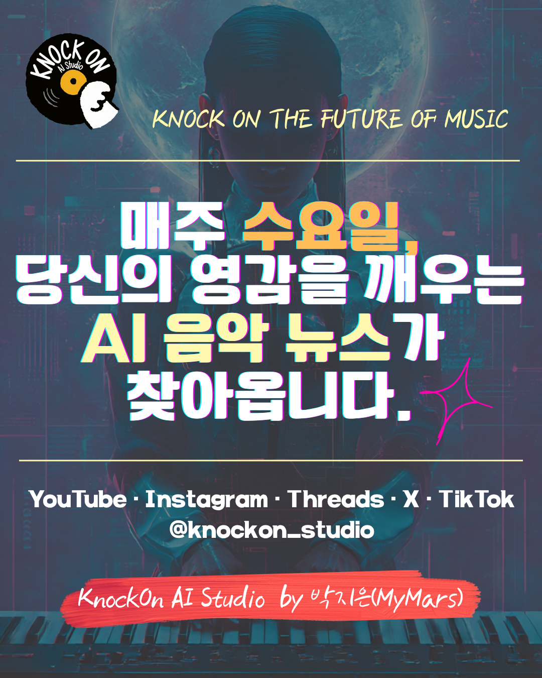 AI 음악의 새로운 문을 여는 크리에이터들의 놀이터. #AI #AI음악 #AI작곡 #AI작사 #AI편곡 #AI사운드 #AI창작 #AImusic #AI워크숍 #AI강의 #AI레슨 #Suno #수노 #AI음악뉴스 #노크온AI스튜디오 #KnockOnAIStudio #노