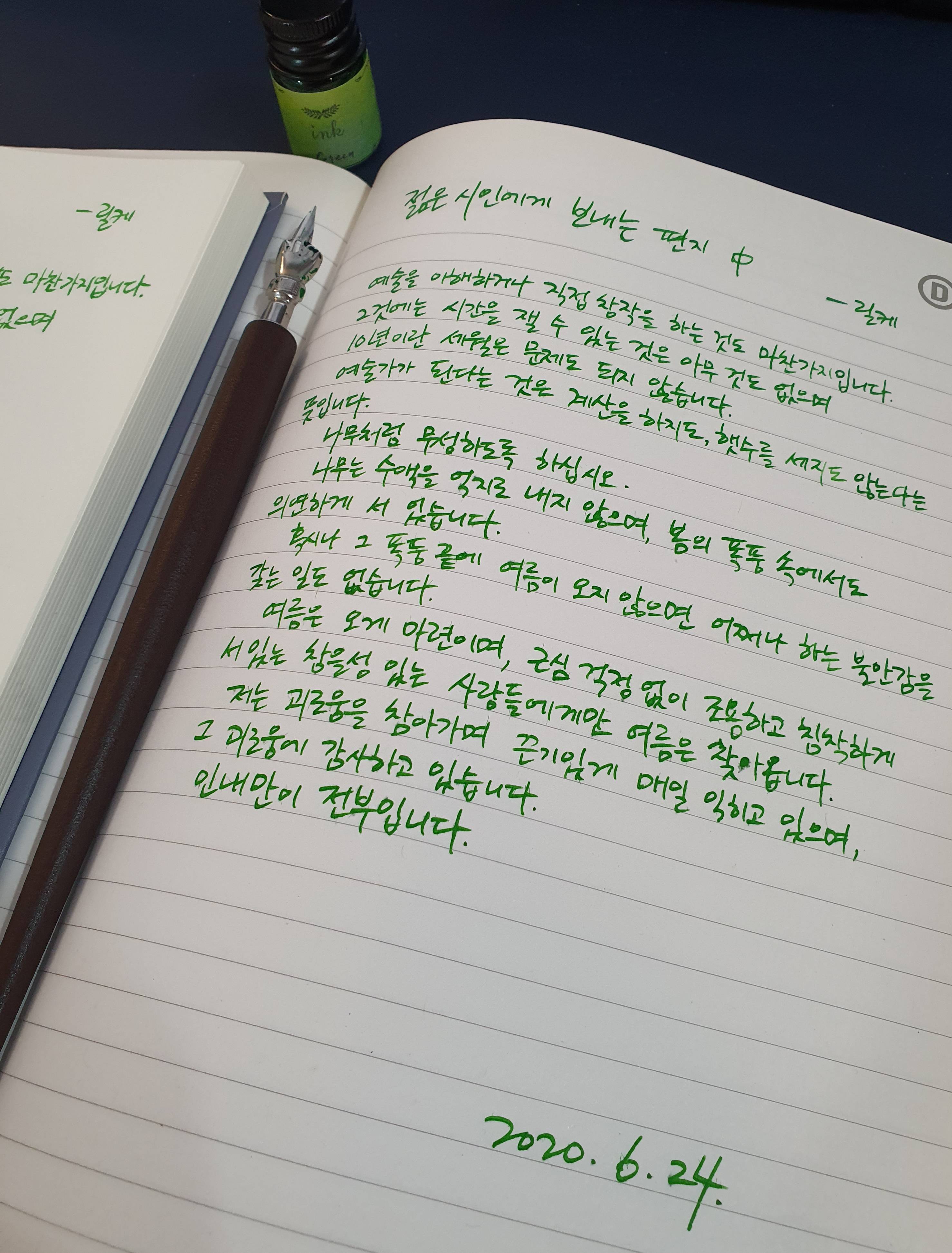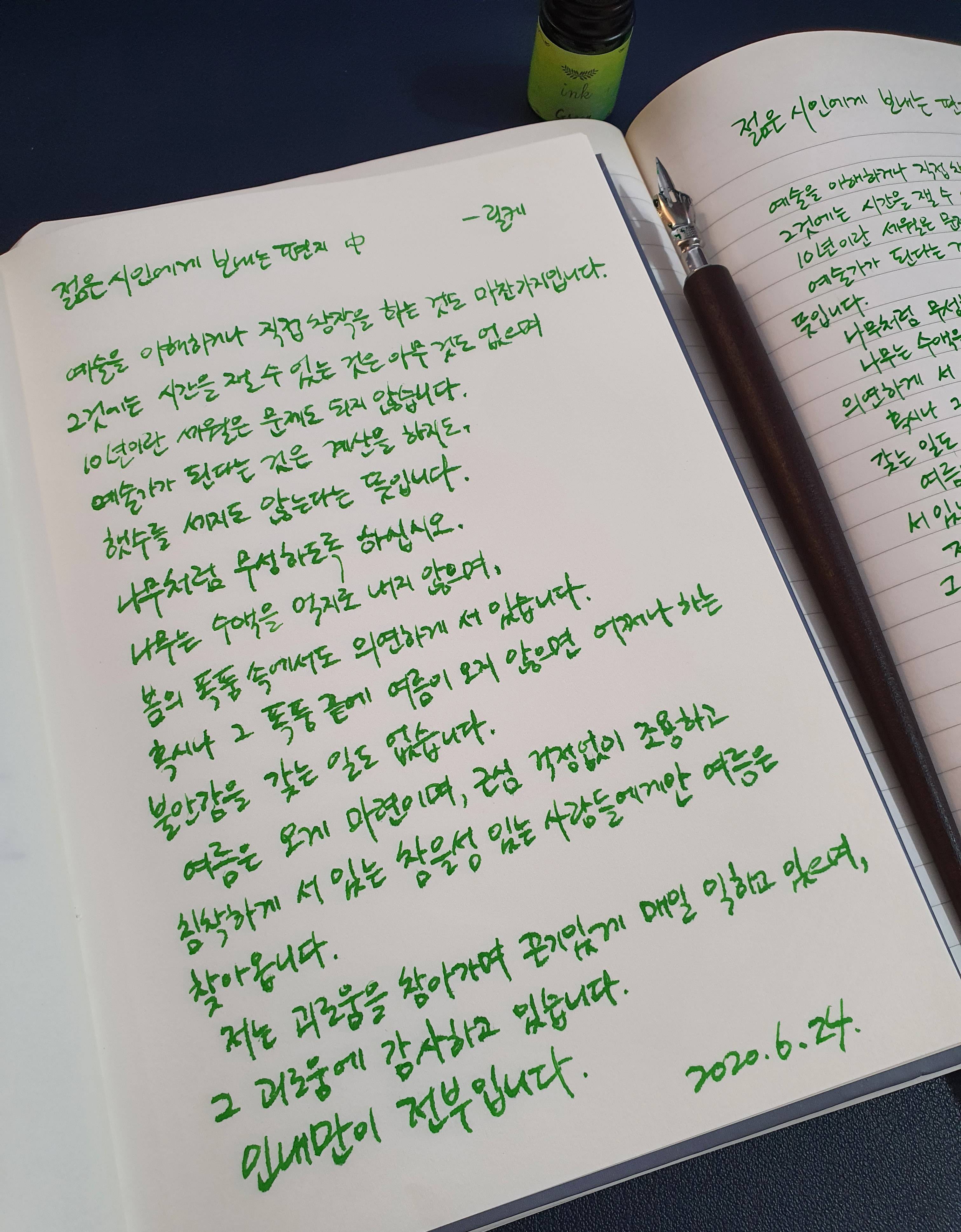#젊은시인에게보내는편지 #릴케 #시필사 #펜글씨 #손글씨 #닙펜 #딥펜 #매일프로젝트 #이른아침을먹던여름 #thatsummerwithyou