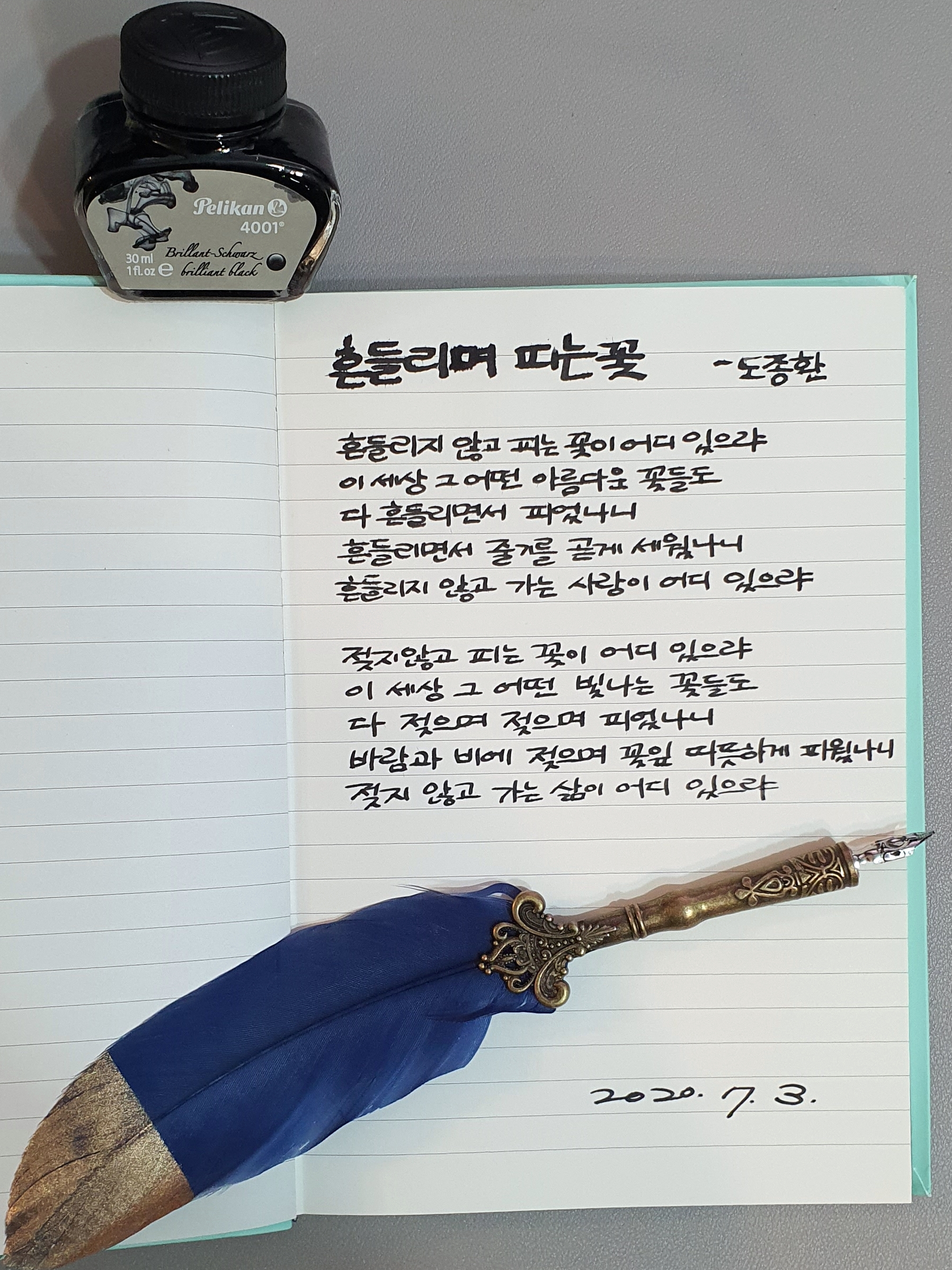 #흔들리며피는꽃 #도종환 #시필사 #펜글씨 #손글씨 #닙펜 #딥펜 #매일프로젝트 #이른아침을먹던여름 #thatsummerwithyou
