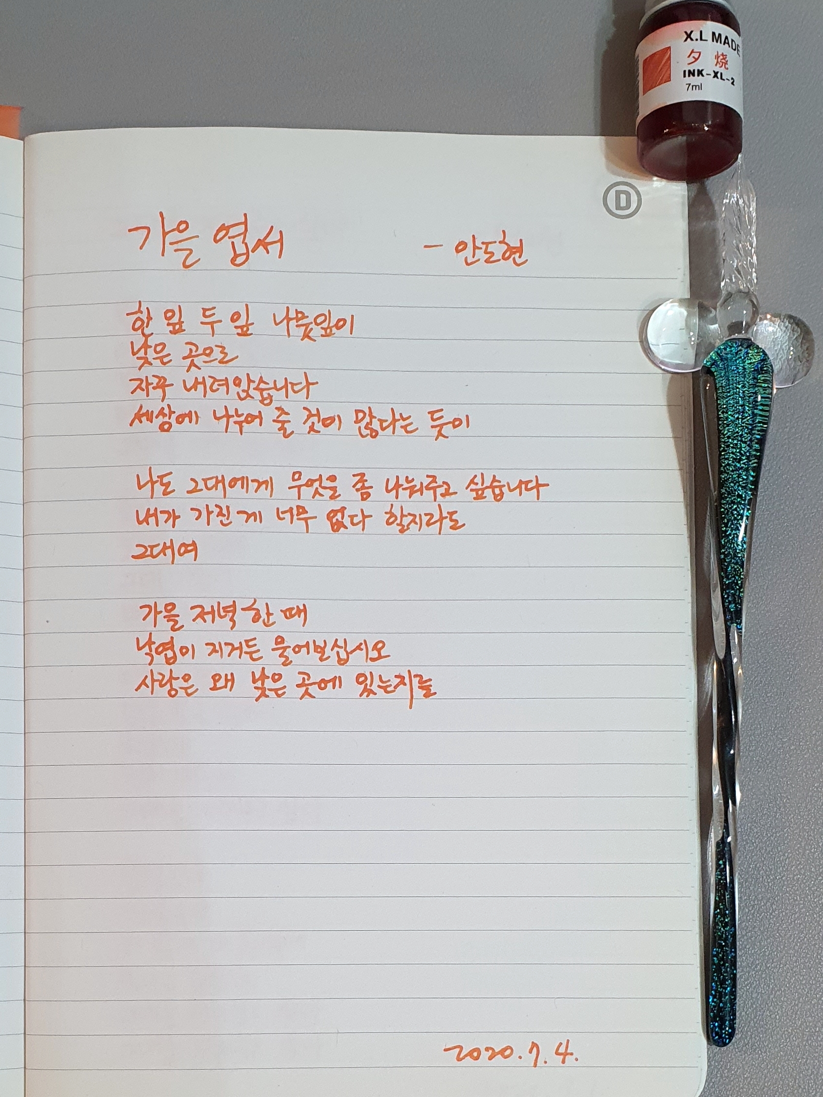 #가을엽서 #안도현 #시필사 #펜글씨 #손글씨 #유리펜 #매일프로젝트 #이른아침을먹던여름 #thatsummerwithyou