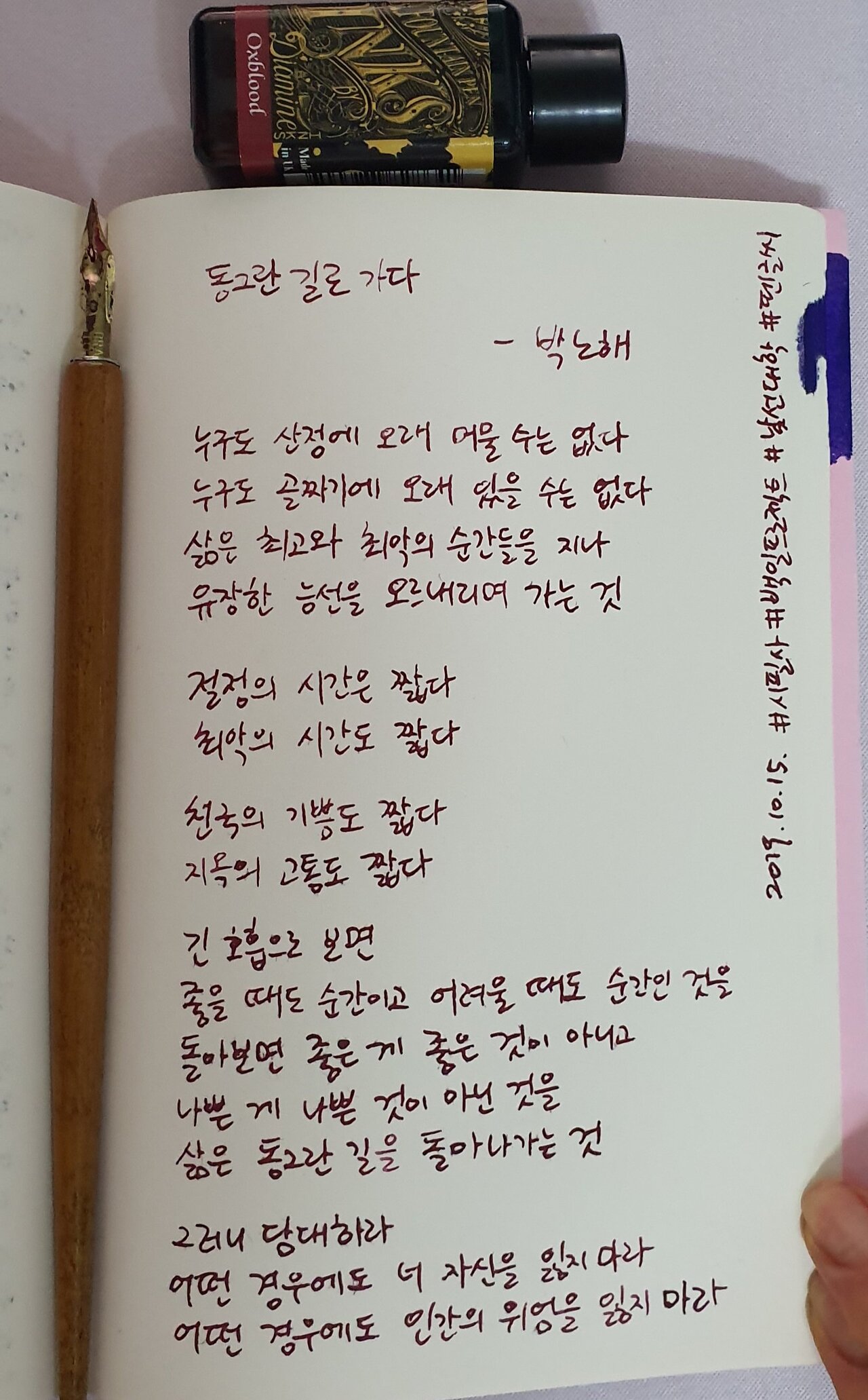 #동그란길로가다 #박노해 #시필사 #손글씨 #펜글씨 #닙펜 #딥펜 #백일프로젝트 #카카오프로젝트100 #낯선대학
