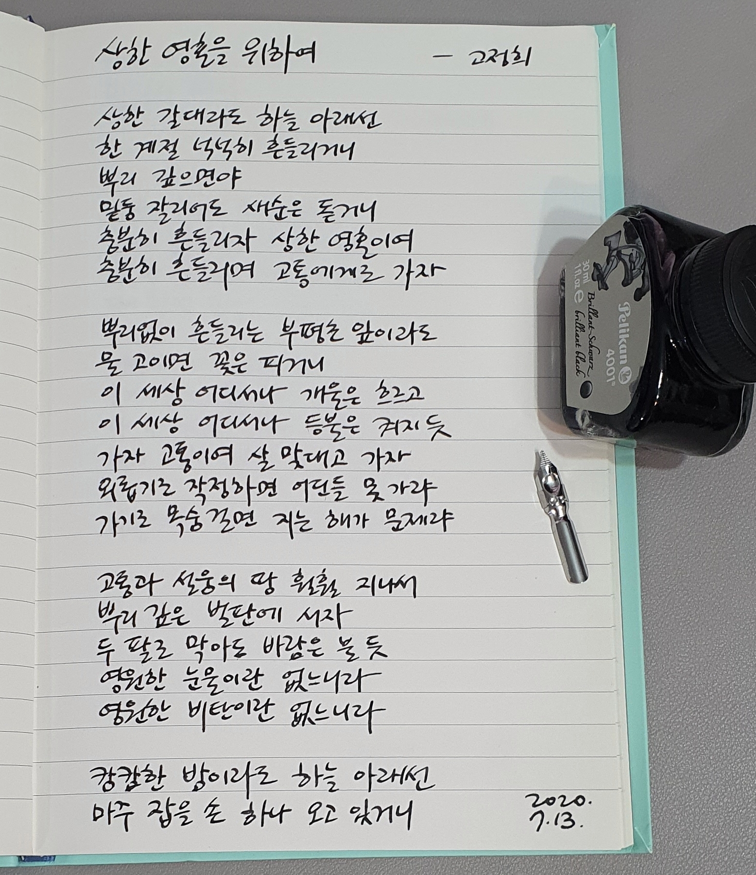 #상한영혼을위하여 #고정희 #시필사 #펜글씨 #손글씨 #닙펜 #딥펜 #매일프로젝트 #이른아침을먹던여름 #thatsummerwithyou