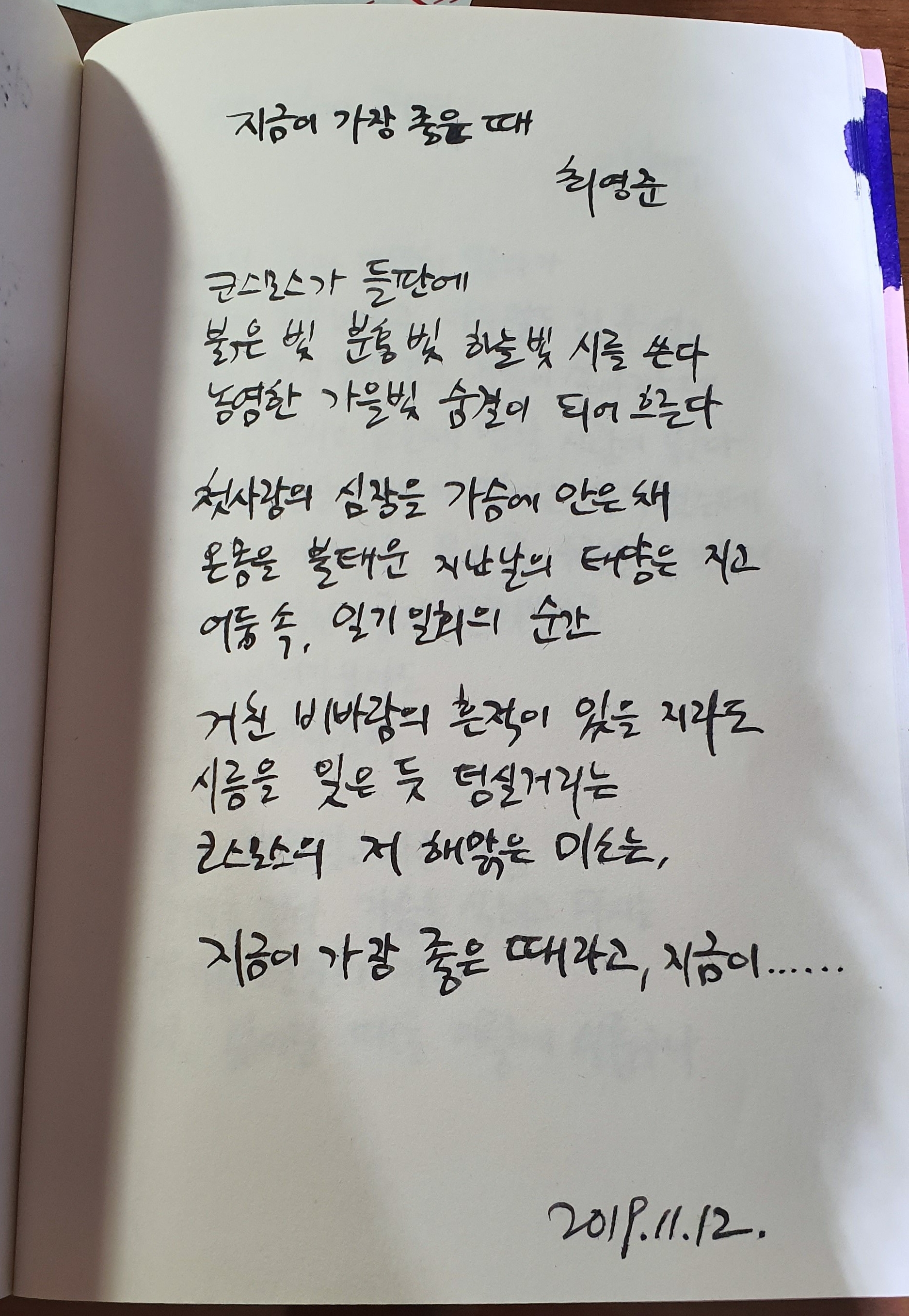 #지금이가장좋은때 #최영준 #시필사 #손글씨 #펜글씨 #닙펜 #딥펜 #백일프로젝트 #카카오프로젝트100 #낯선대학