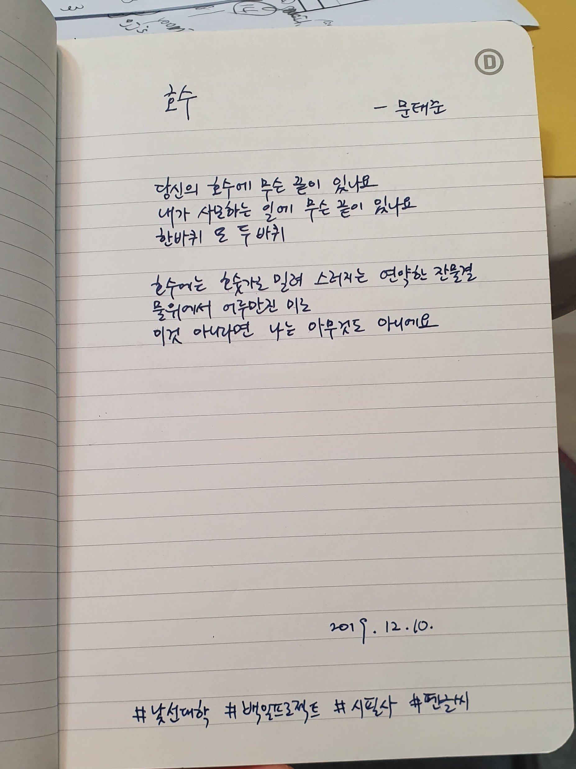 #호수 #문태준 #시필사 #손글씨 #펜글씨 #닙펜 #딥펜 #백일프로젝트 #카카오프로젝트100 #낯선대학