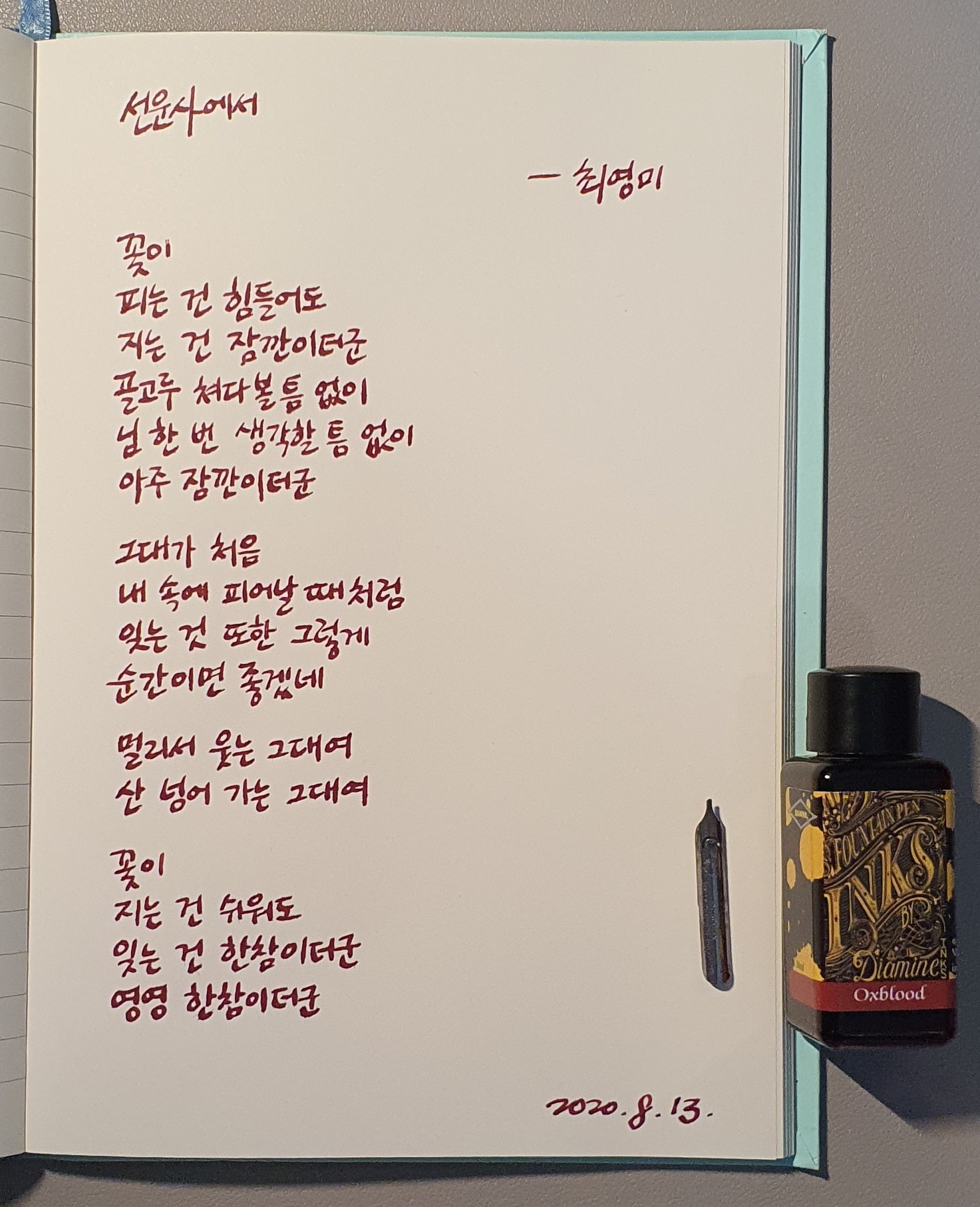 #선운사에서 #최영미 #시필사 #펜글씨 #손글씨 #닙펜 #딥펜 #매일프로젝트 #이른아침을먹던여름 #thatsummerwithyou