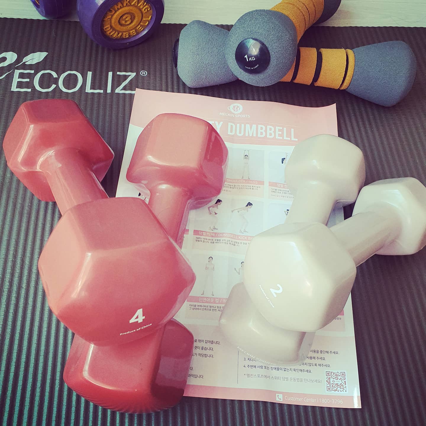집에 1, 3kg짜리가 있어서 2, 4kg 덤벨을 샀다.