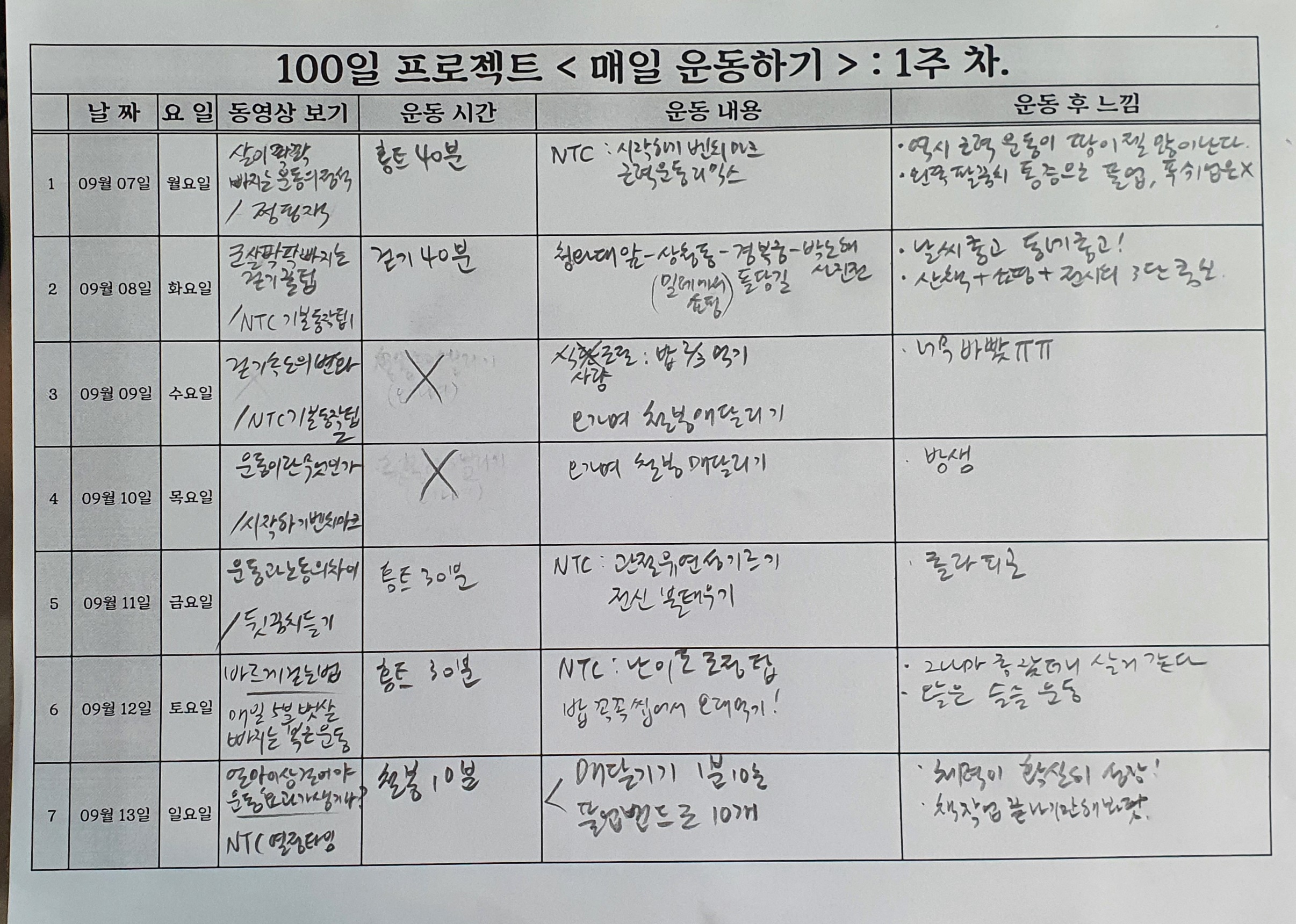 친구들과 하는 <백일 프로젝트 : 매일 운동하기>의 셀프 기록장이다.