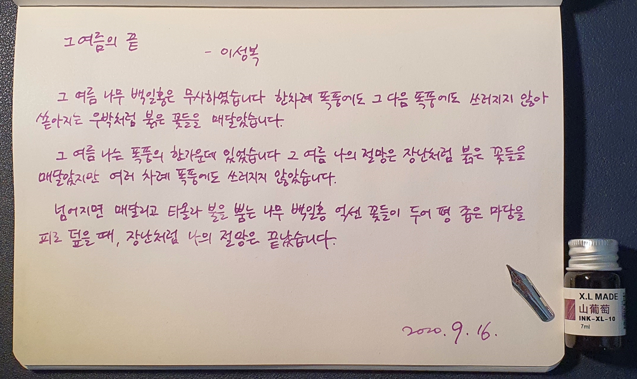 #그여름의끝 #이성복 #시필사 #펜글씨 #손글씨 #닙펜 #딥펜 #매일프로젝트 #이른아침을먹던여름 #thatsummerwithyou #카카오프로젝트100 #낯선대학