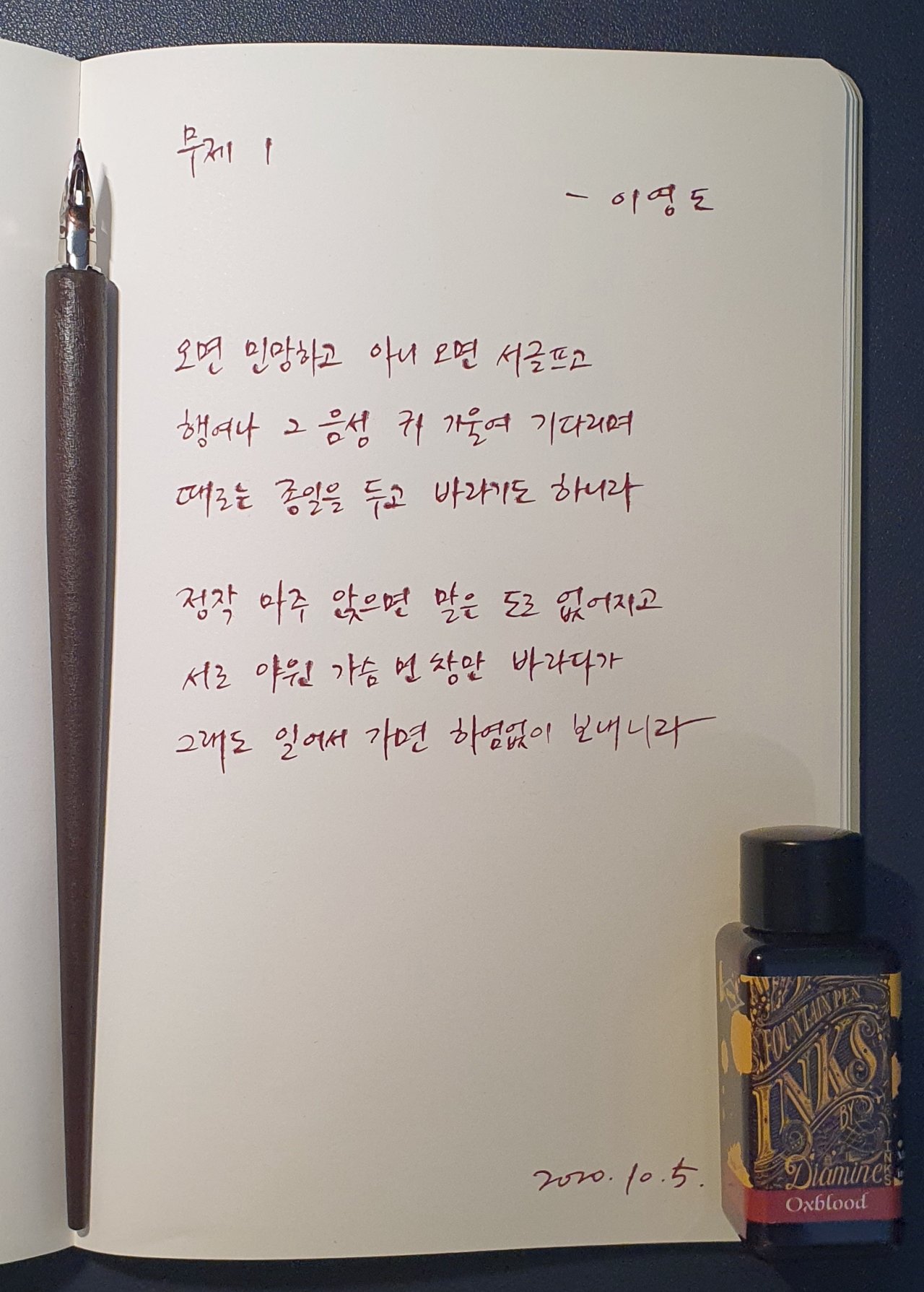 #무제 #이영도 #시필사 #닙펜 #딥펜 #펜글씨 #손글씨 #매일프로젝트 #이른아침을먹던여름 #thatsummerwithyou #카카오프로젝트100 #낯선대학
