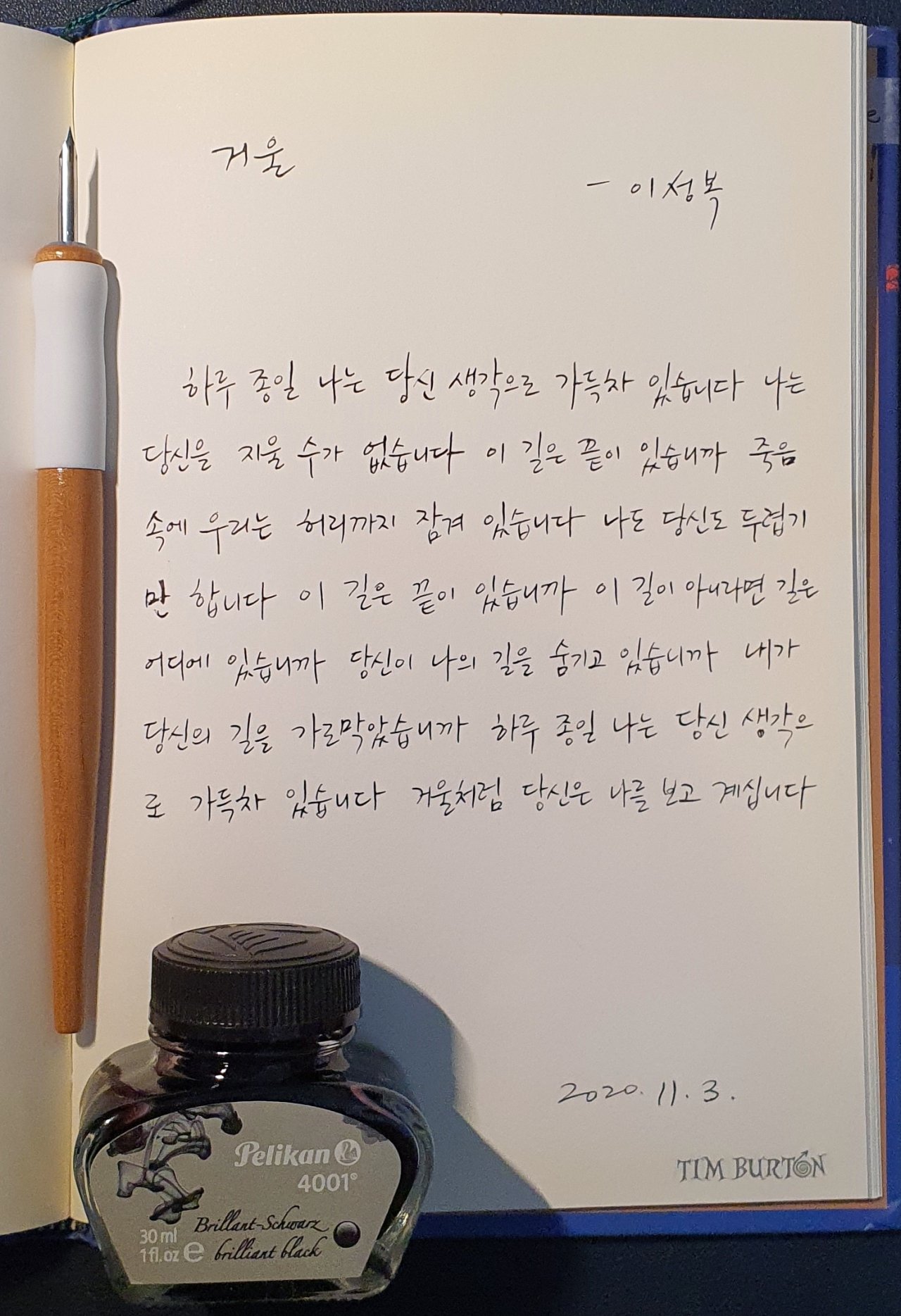 #거울 #이성복 #펜 #딥펜 #펜글씨 #손글씨 #매일프로젝트 #이른아침을먹던여름 #thatsummerwithyou #카카오프로젝트100 #낯선대학 #시처럼시필사