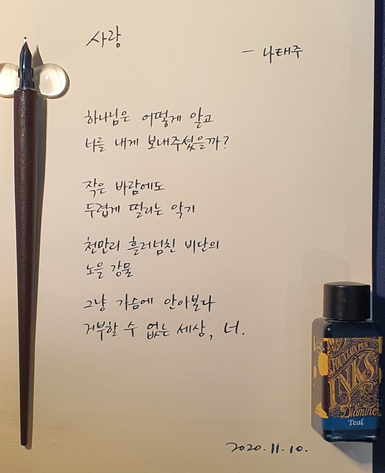 #사랑 #나태주 #닙펜 #딥펜 #펜글씨 #손글씨 #매일프로젝트 #이른아침을먹던여름 #thatsummerwithyou #카카오프로젝트100 #낯선대학 #시처럼시필사