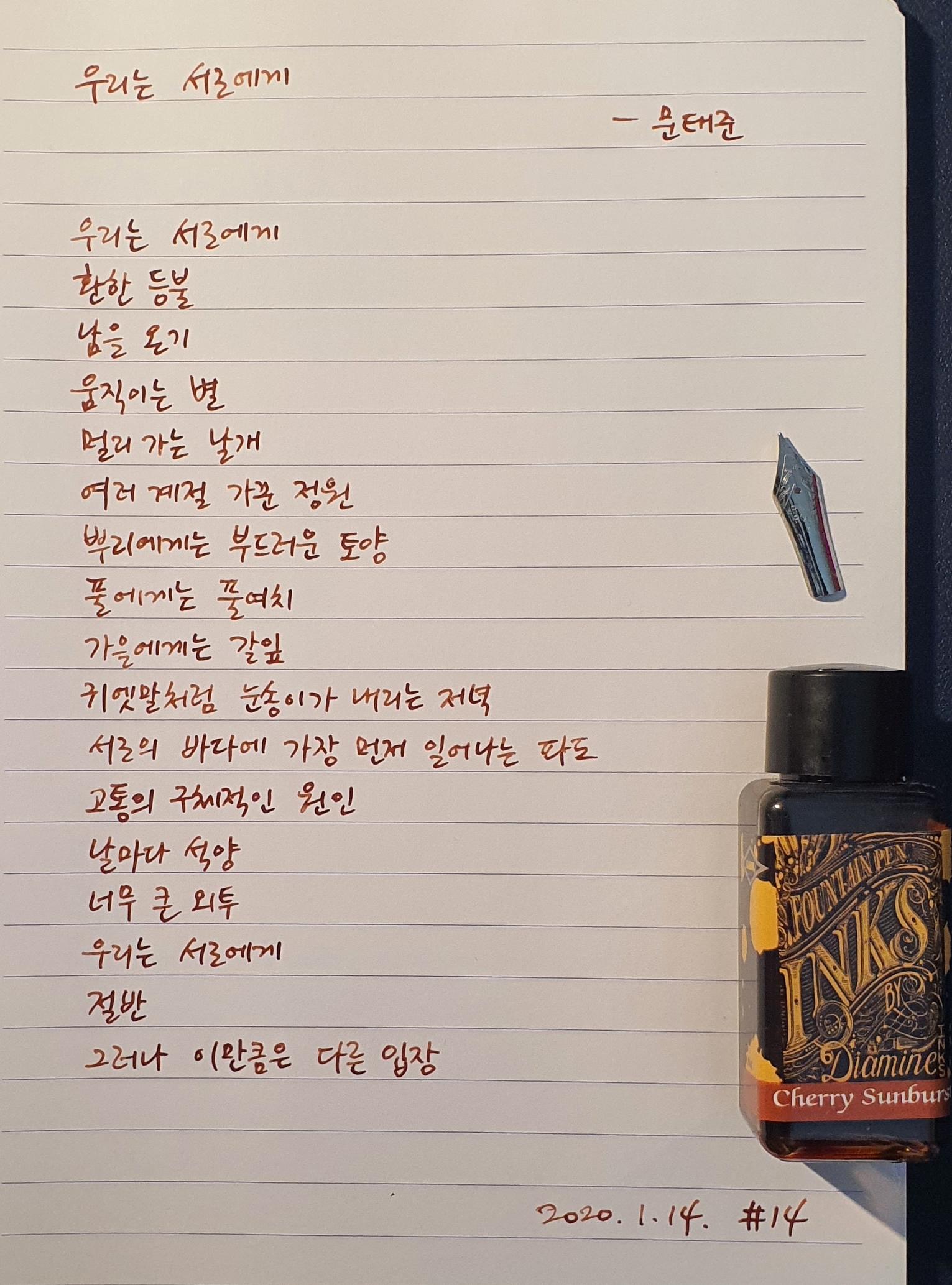 #우리는서로에게 #문태준 #시필사 #닙펜 #딥펜 #펜글씨 #손글씨 #매일시쓰기 #1일1시 #하루에시한편 #이른아침을먹던여름 #thatsummerwithyou