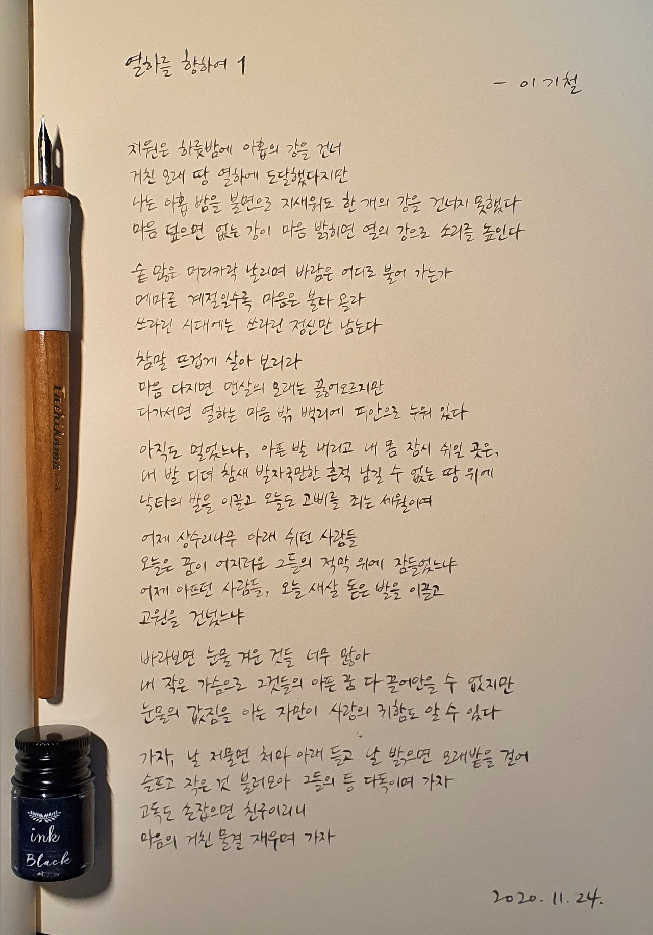 #熱河를향하여1 #열하를향하여 #이기철 #청산행 #닙펜 #딥펜 #펜글씨 #손글씨 #매일프로젝트 #이른아침을먹던여름 #thatsummerwithyou #카카오프로젝트100 #낯선대학 #시처럼시필사