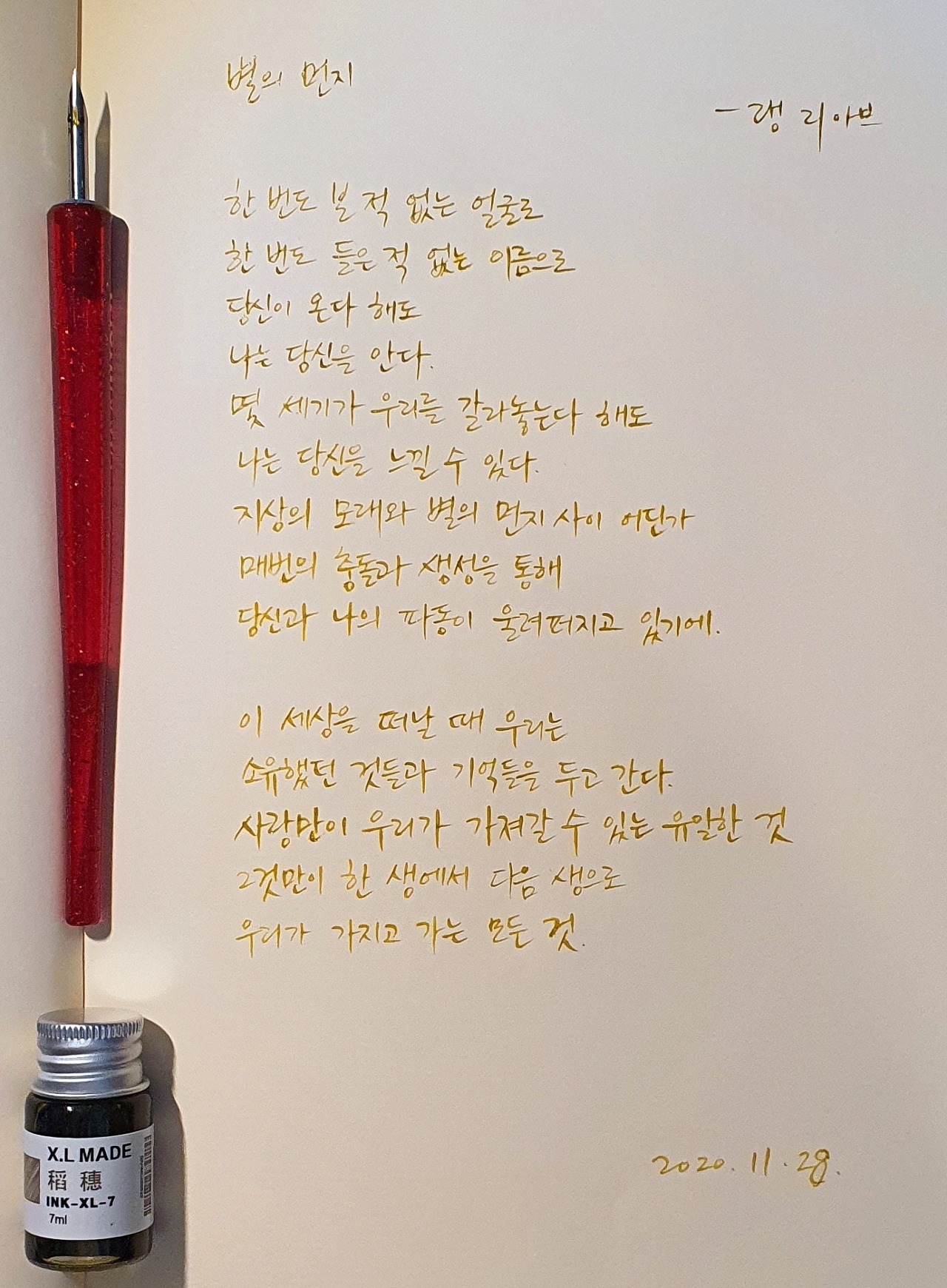 #별의먼지 #랭리아브 #류시화 #닙펜 #딥펜 #펜글씨 #손글씨 #매일프로젝트 #이른아침을먹던여름 #thatsummerwithyou #카카오프로젝트100 #낯선대학 #시처럼시필사