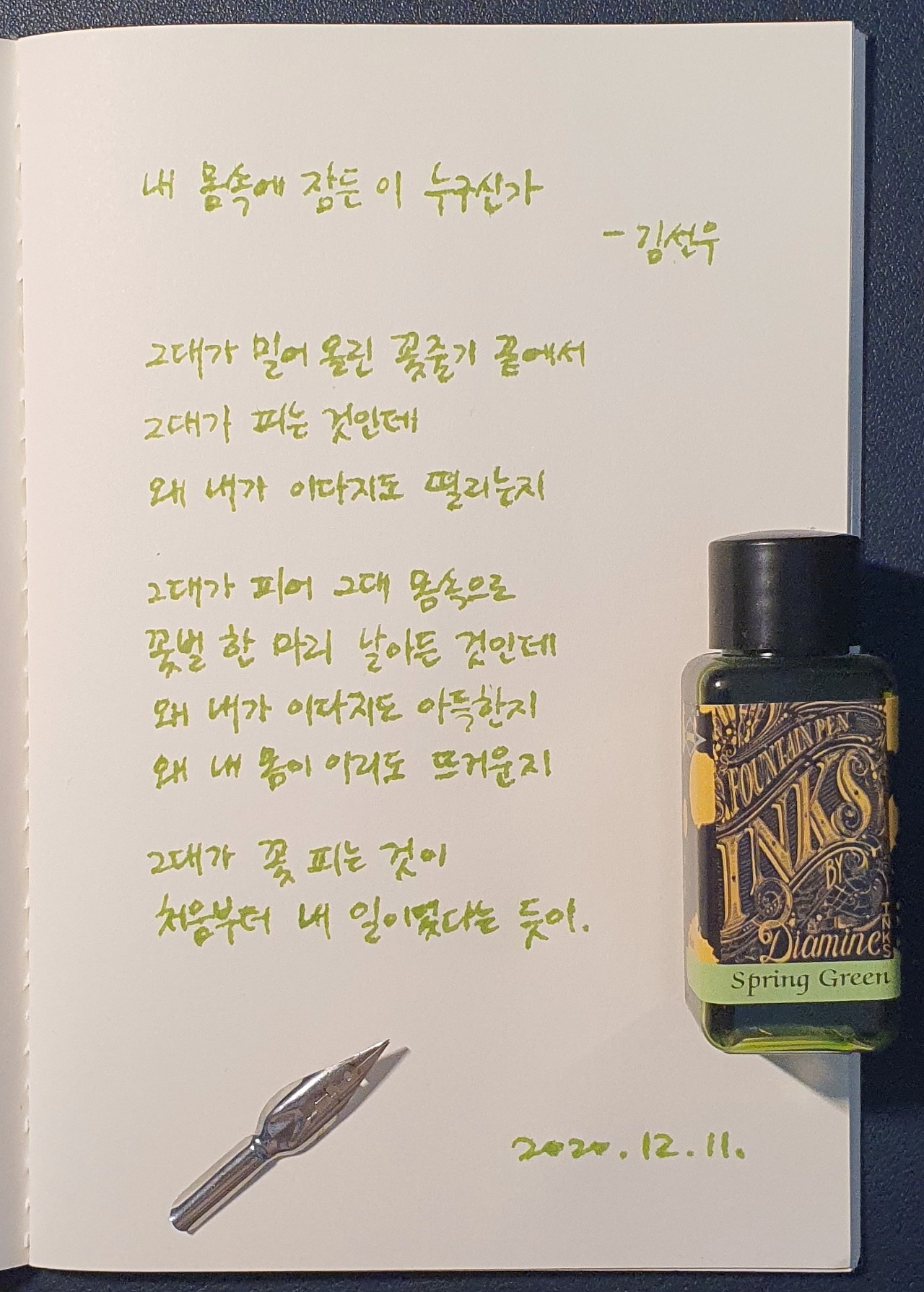 #내몸속에잠든이누구신가 #김선우 #닙펜 #딥펜 #펜글씨 #손글씨 #매일프로젝트 #이른아침을먹던여름 #thatsummerwithyou #카카오프로젝트100 #낯선대학 #시처럼시필사