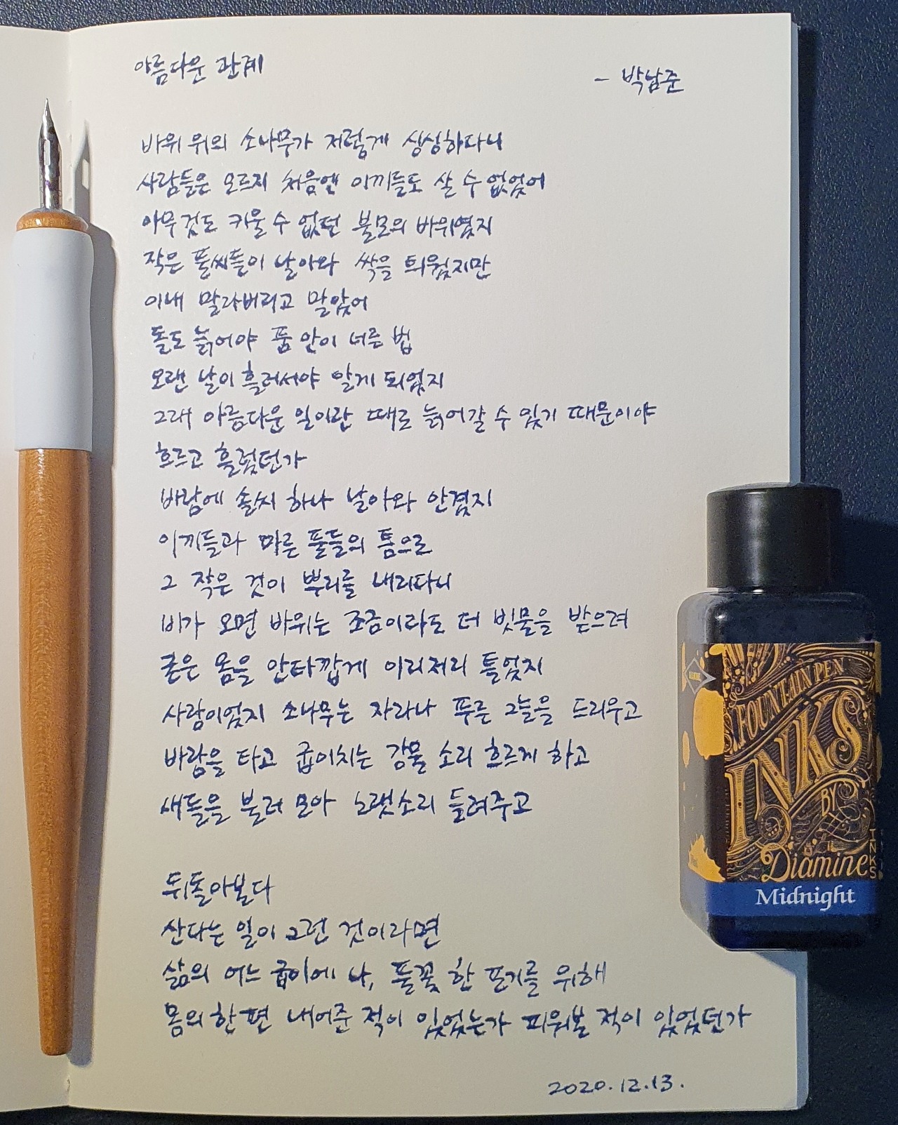 #아름다운관계 #박남준 #닙펜 #딥펜 #펜글씨 #손글씨 #매일프로젝트 #이른아침을먹던여름 #thatsummerwithyou #카카오프로젝트100 #낯선대학 #시처럼시필사