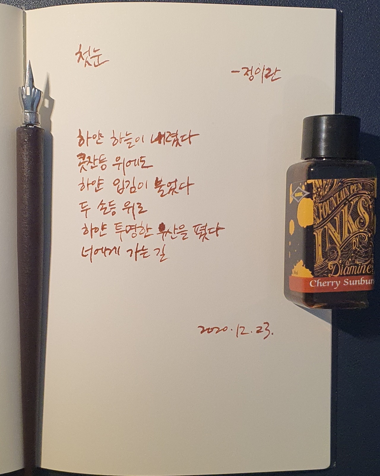 #첫눈 #정이란 #닙펜 #딥펜 #펜글씨 #손글씨 #시필사 #매일시쓰기 #매일프로젝트 #이른아침을먹던여름 #thatsummerwithyou