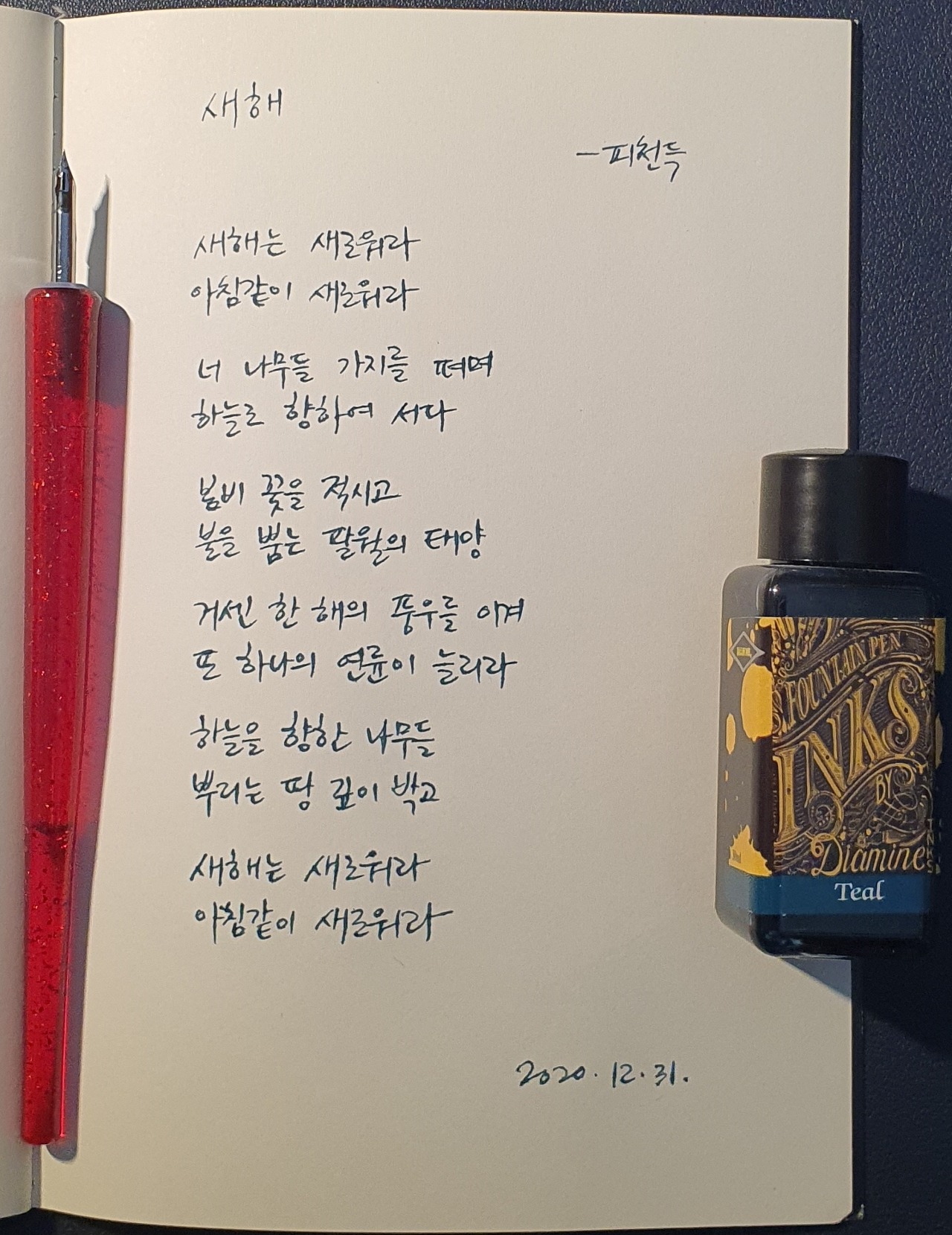 #새해 #피천득 #닙펜 #딥펜 #펜글씨 #손글씨 #시필사 #매일시쓰기 #매일프로젝트 #이른아침을먹던여름 #thatsummerwithyou #2020마지막