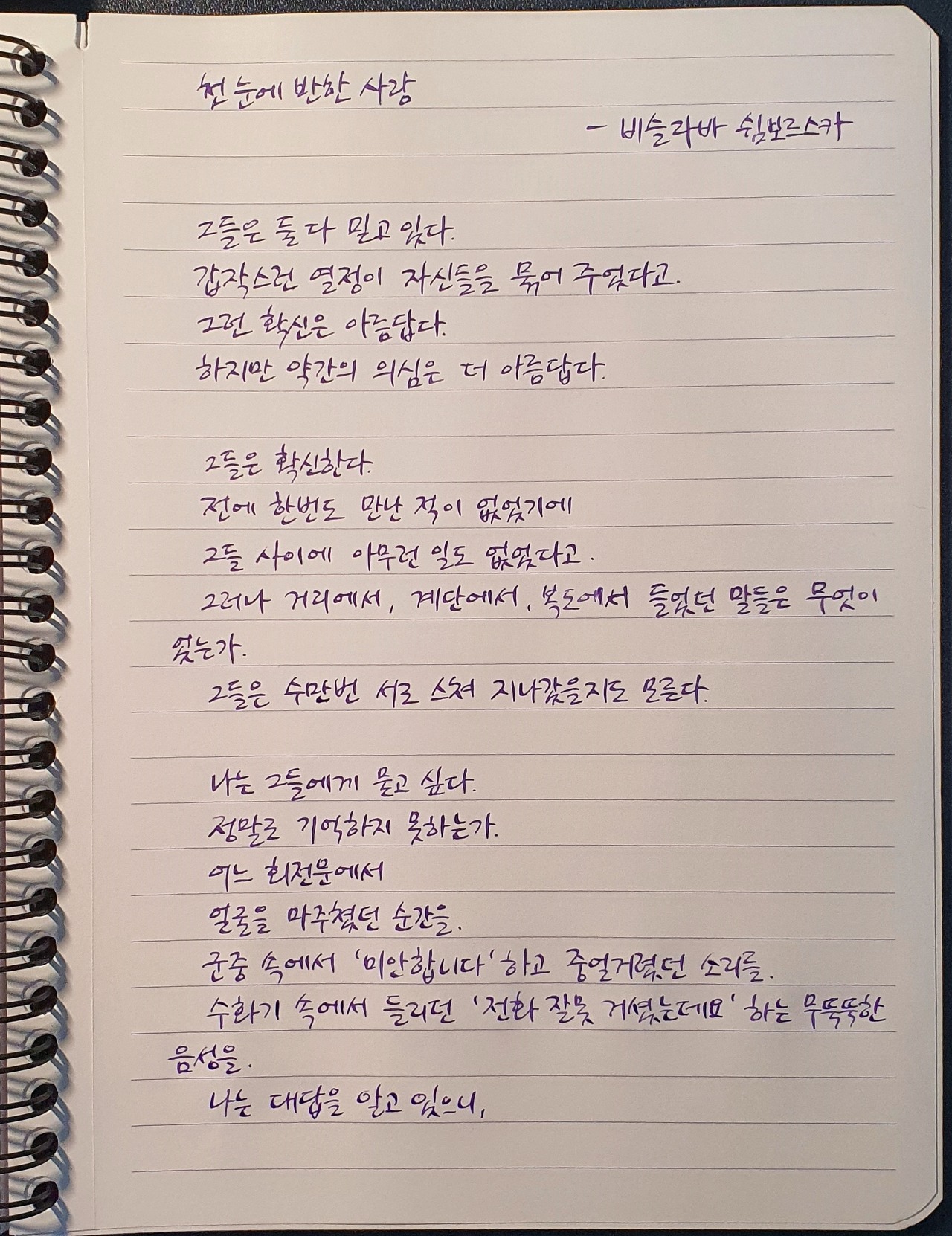 #첫눈에반한사랑 #비스와바쉼보르스카 #시필사 #닙펜 #딥펜 #펜글씨 #손글씨 #매일시쓰기 #1일1시 #하루에시한편 #이른아침을먹던여름 #thatsummerwithyou