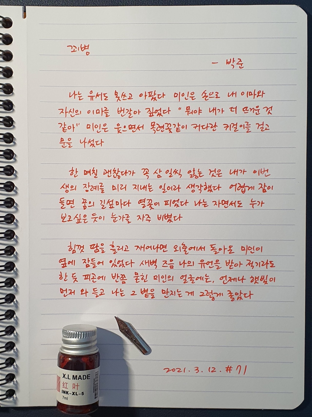 #꾀병 #박준 #시필사 #닙펜 #딥펜 #펜글씨 #손글씨 #매일시쓰기 #1일1시 #하루에시한편 #이른아침을먹던여름 #thatsummerwithyou