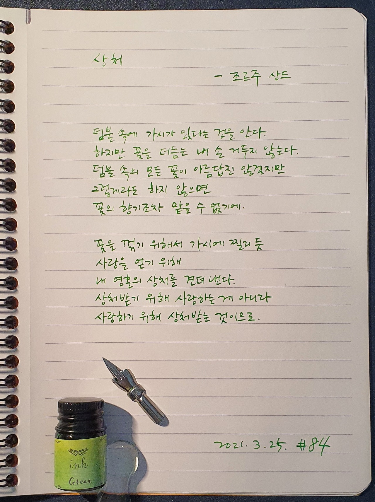 #상처 #조르주상드 #시필사 #닙펜 #딥펜 #펜글씨 #손글씨 #매일시쓰기 #1일1시 #하루에시한편 #이른아침을먹던여름 #thatsummerwithyou