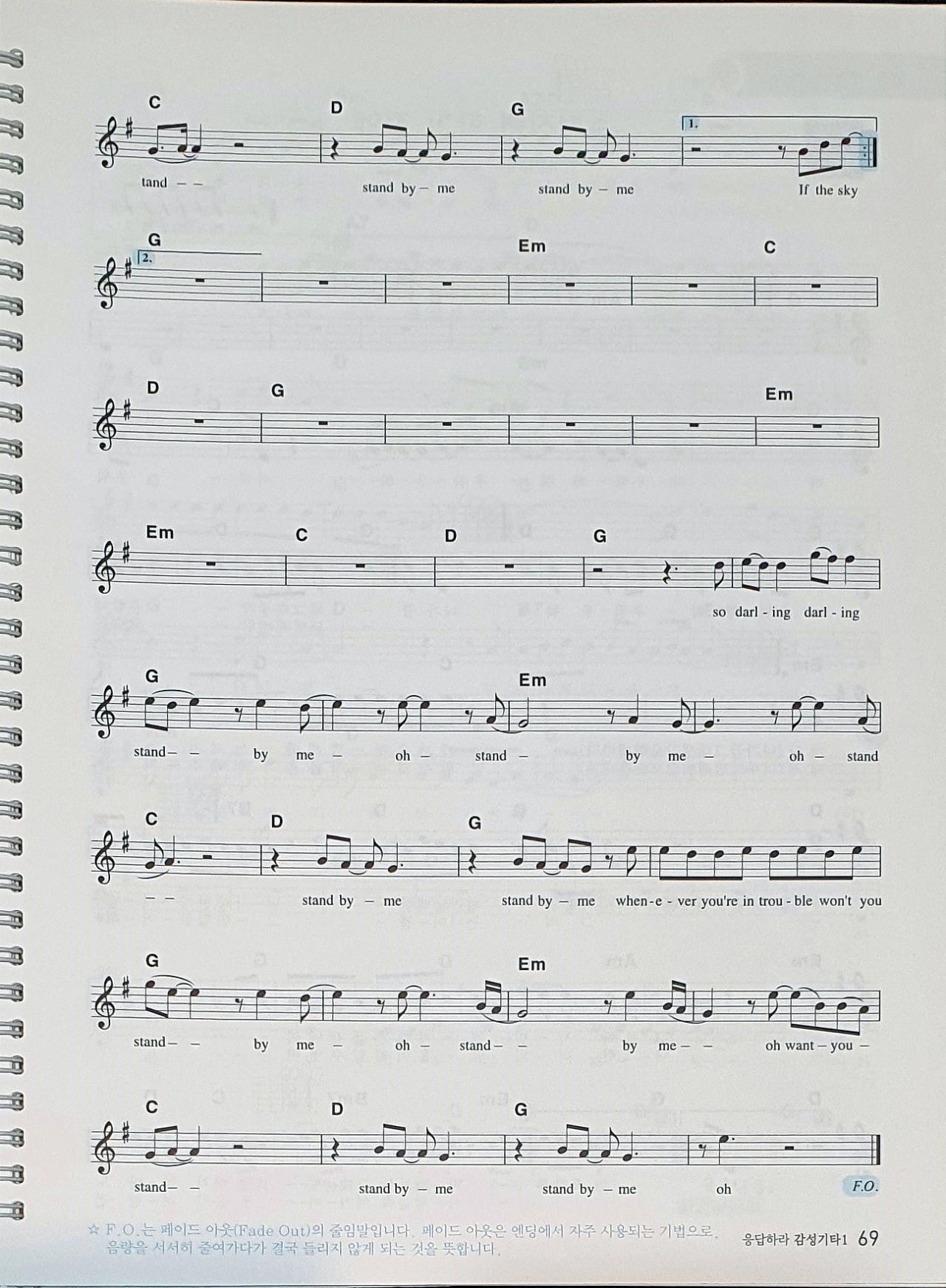 잘되시는 분들은 '응답하라 감성기타 1'에 있는 'Stand By Me'(P.68~69)를 연주해봅시다.