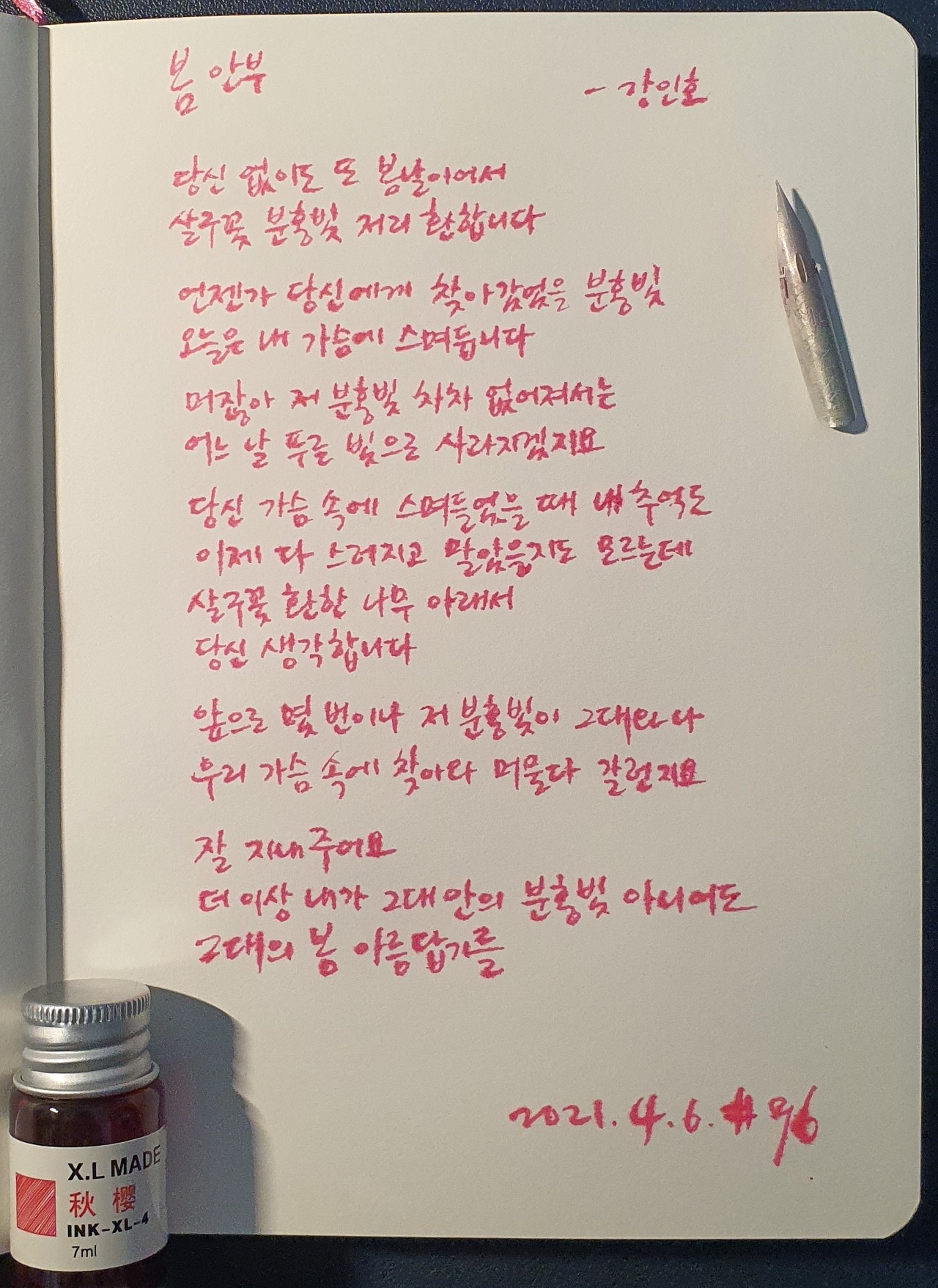 #봄안부 #강인호 #시필사 #닙펜 #딥펜 #펜글씨 #손글씨 #매일시쓰기 #1일1시 #하루에시한편 #이른아침을먹던여름 #thatsummerwithyou