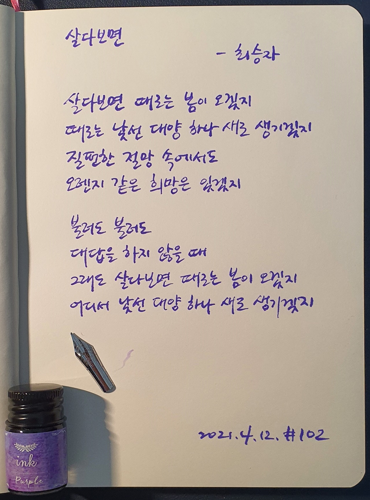 #살다보면 #최승자 #시필사 #닙펜 #딥펜 #펜글씨 #손글씨 #매일시쓰기 #1일1시 #하루에시한편 #이른아침을먹던여름 #thatsummerwithyou