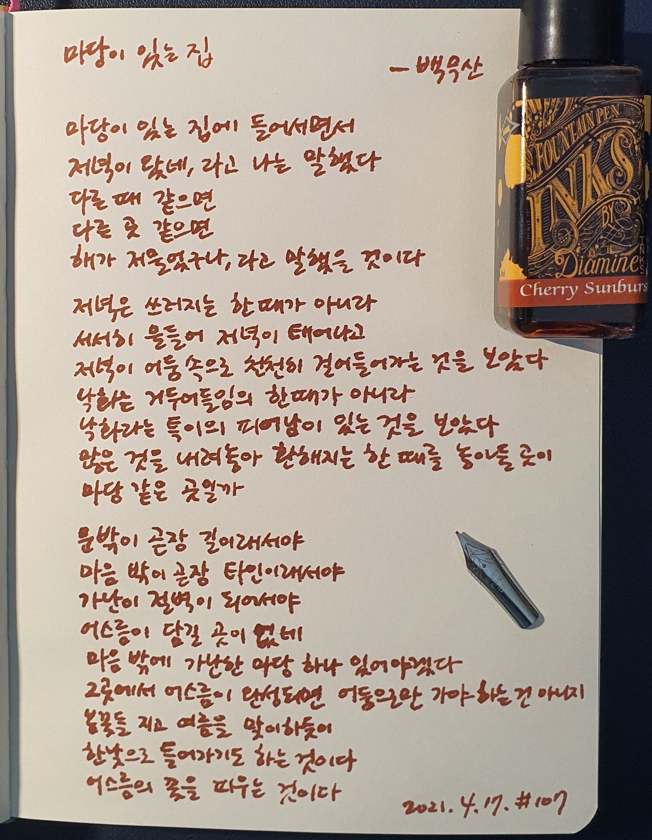 #마당이있는집 #백무산 #시필사 #닙펜 #딥펜 #펜글씨 #손글씨 #매일시쓰기 #1일1시 #하루에시한편 #이른아침을먹던여름 #thatsummerwithyou