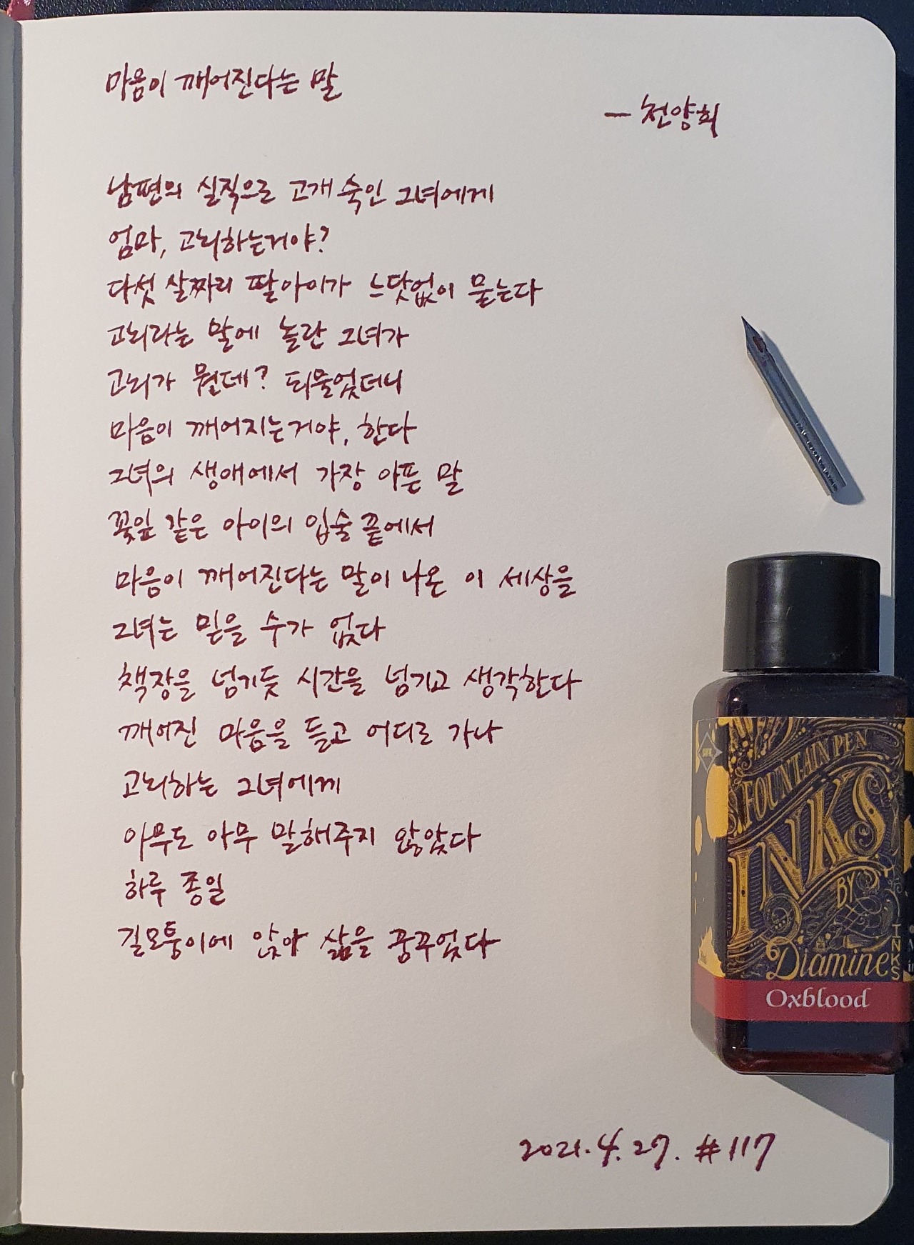 #마음이깨어진다는말 #천양희 #시필사 #닙펜 #딥펜 #펜글씨 #손글씨 #매일시쓰기 #1일1시 #하루에시한편 #이른아침을먹던여름 #thatsummerwithyou
