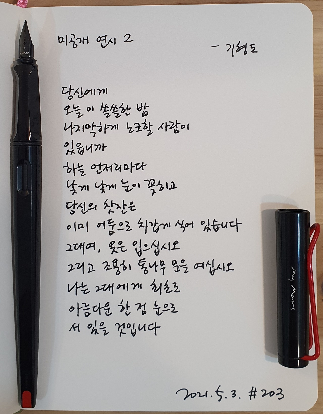 #미공개연시2 #기형도 #만년필 #라미 #펜글씨 #손글씨 #시필사 #매일시쓰기 #1일1시 #하루에시한편 #이른아침을먹던여름 #thatsummerwithyou #나의화성 #MyMars