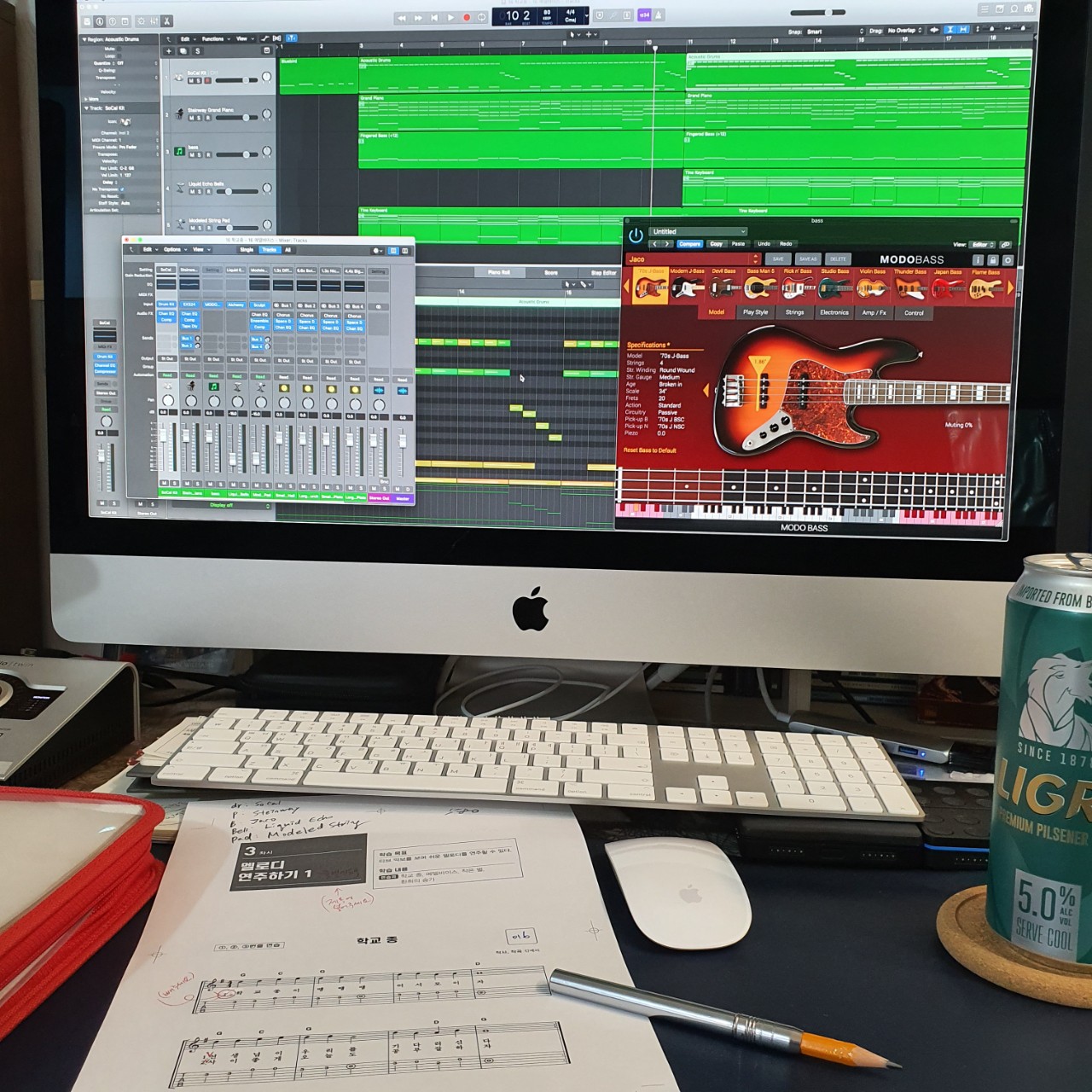 Modo bass의 프리셋들 중에 'Jaco'가 맘에 쏙 들어서 어제 만든 음원들의 베이스 소리를 다 'Jaco'로 썼어요.