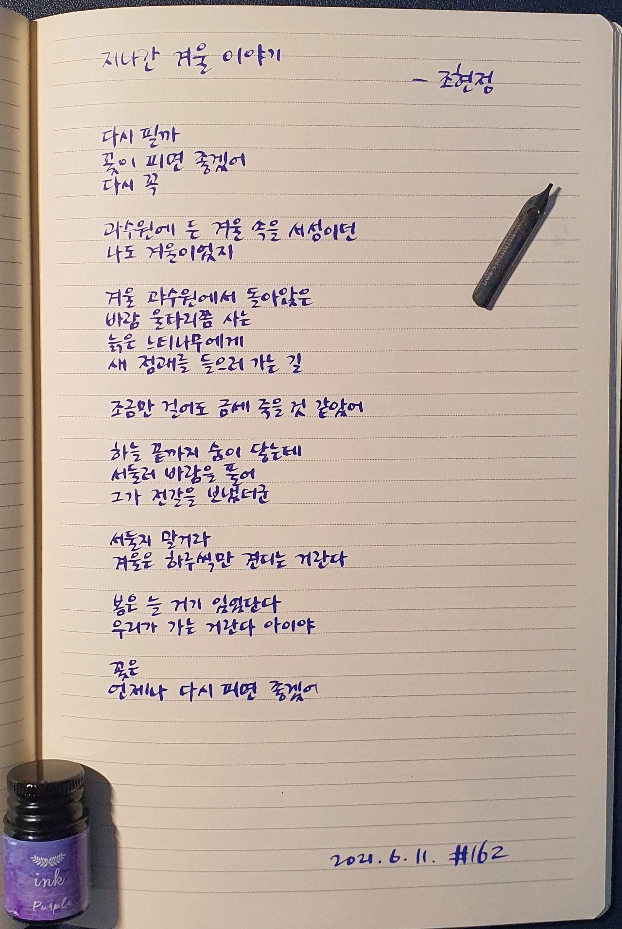 #지나간겨울이야기 #조현정 #시필사 #닙펜 #딥펜 #펜글씨 #손글씨 #매일시쓰기 #1일1시 #하루에시한편 #이른아침을먹던여름 #thatsummerwithyou