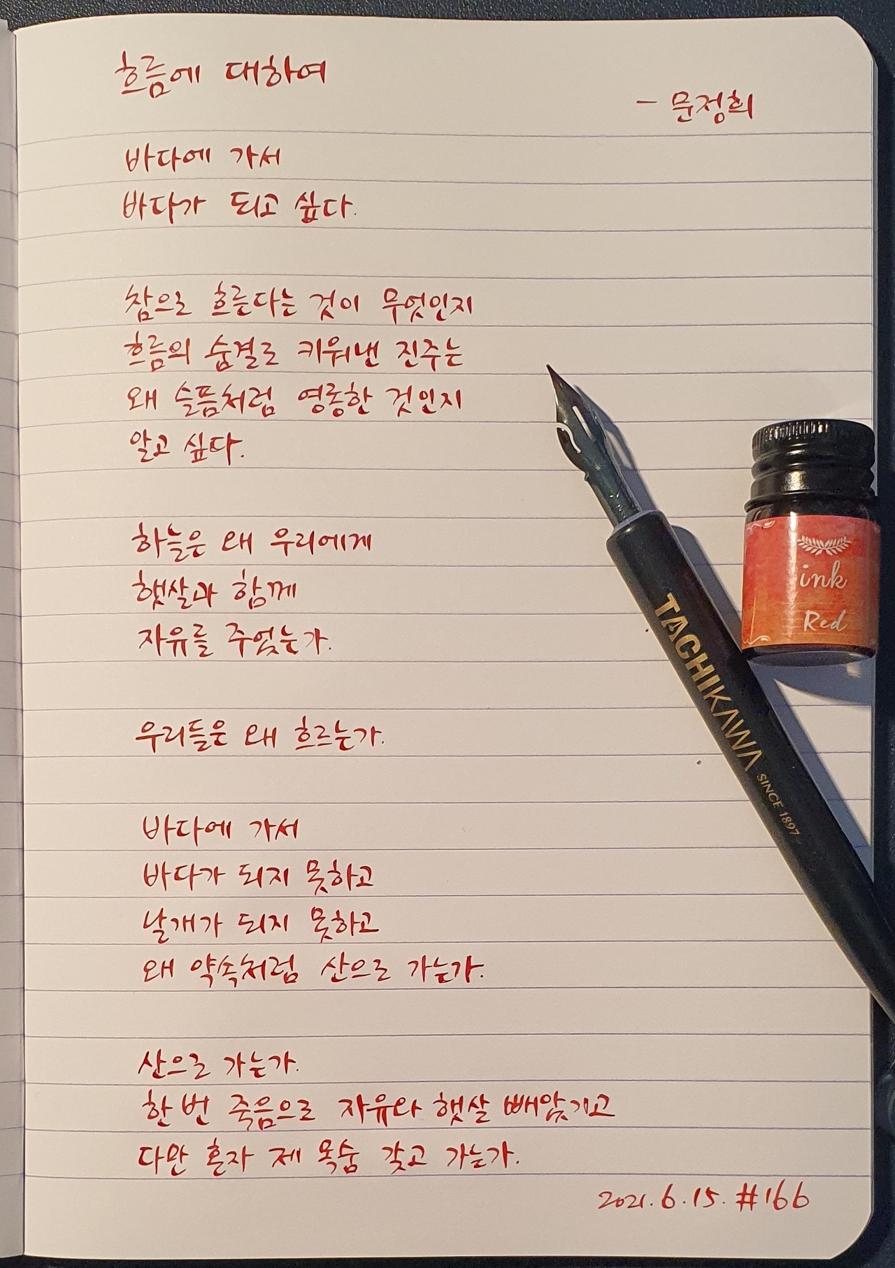 #흐름에대하여 #문정희 #시필사 #닙펜 #딥펜 #펜글씨 #손글씨 #매일시쓰기 #1일1시 #하루에시한편 #이른아침을먹던여름 #thatsummerwithyou