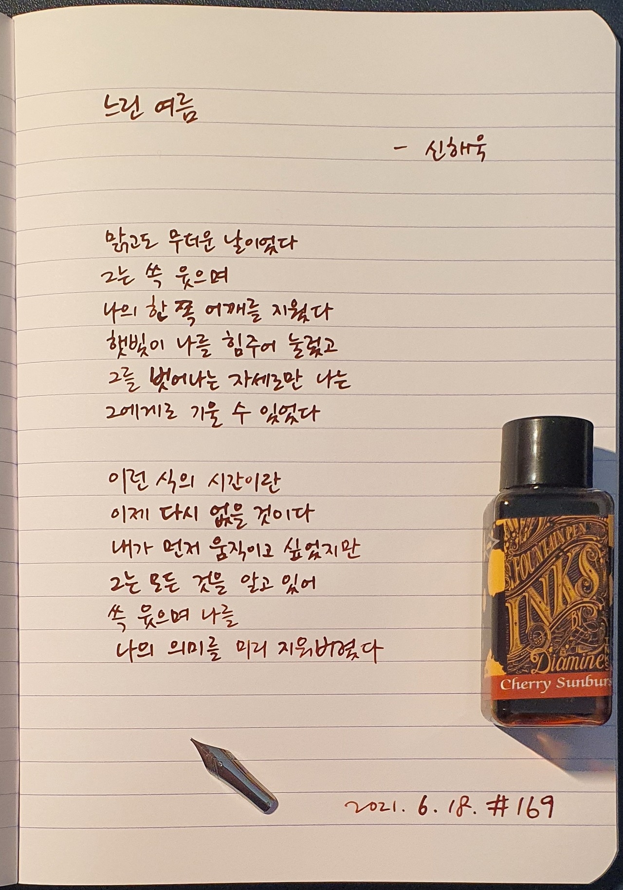 #느린여름 #신해욱 #시필사 #닙펜 #딥펜 #펜글씨 #손글씨 #매일시쓰기 #1일1시 #하루에시한편 #이른아침을먹던여름 #thatsummerwithyou