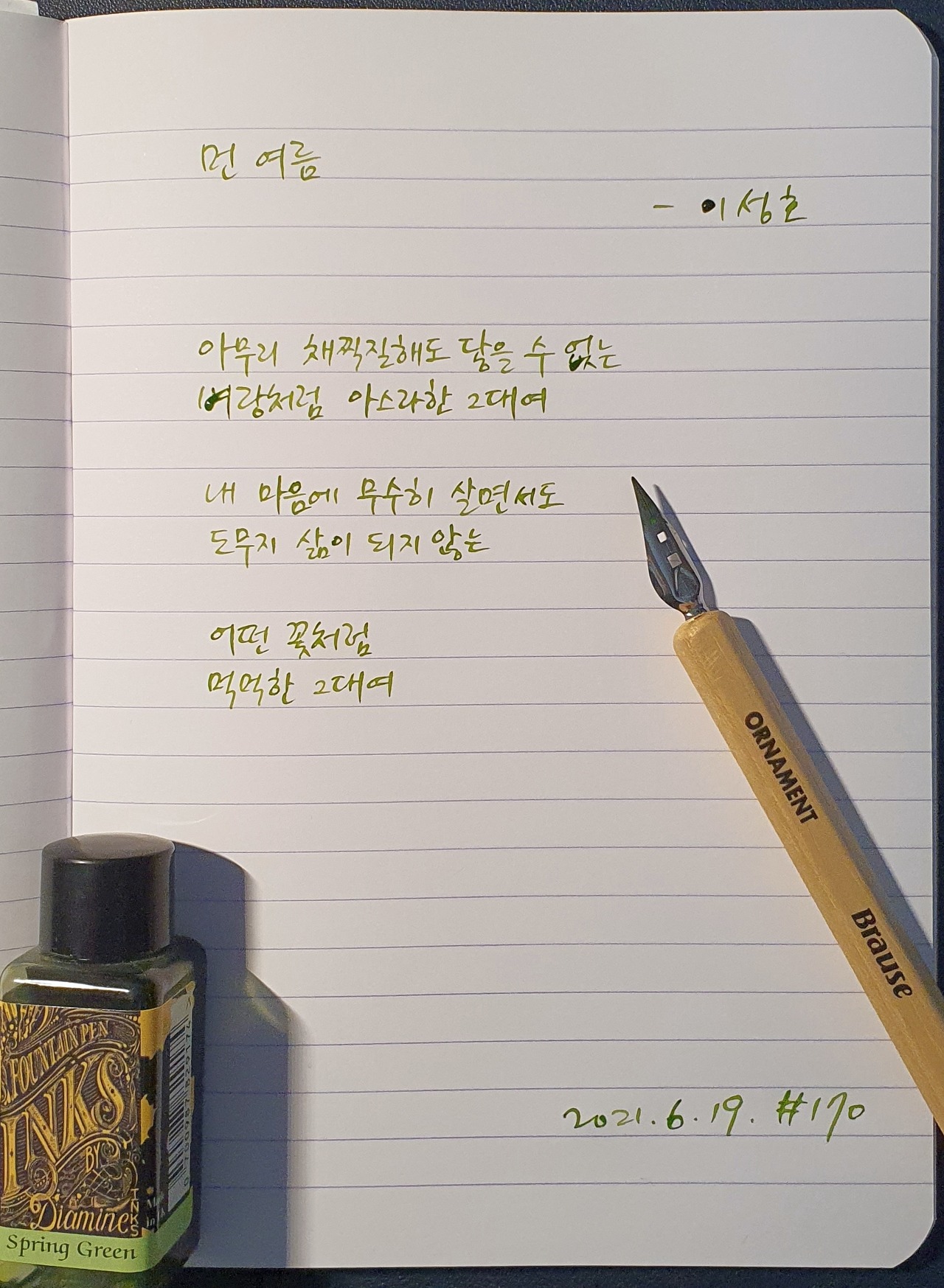 #먼여름 #이성호 #시필사 #닙펜 #딥펜 #펜글씨 #손글씨 #매일시쓰기 #1일1시 #하루에시한편 #이른아침을먹던여름 #thatsummerwithyou