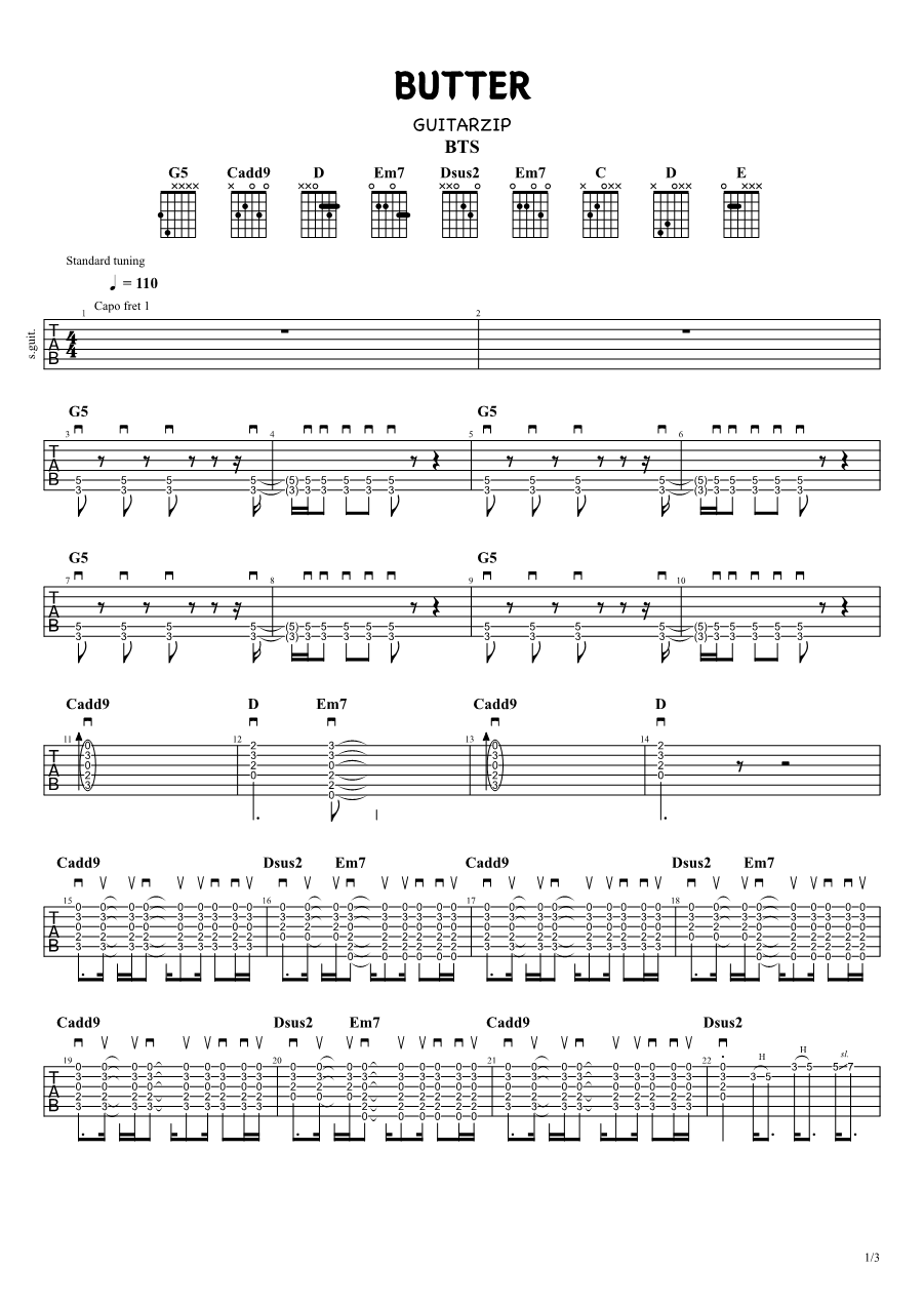 [TAB악보] BTS(방탄소년단) - Butter