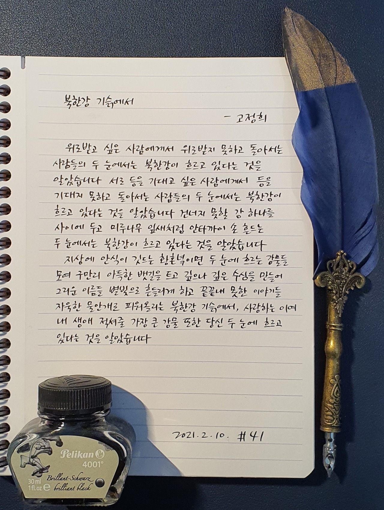 #북한강기슭에서 #고정희 #시필사 #닙펜 #딥펜 #펜글씨 #손글씨 #매일시쓰기 #1일1시 #하루에시한편 #이른아침을먹던여름 #thatsummerwithyou
