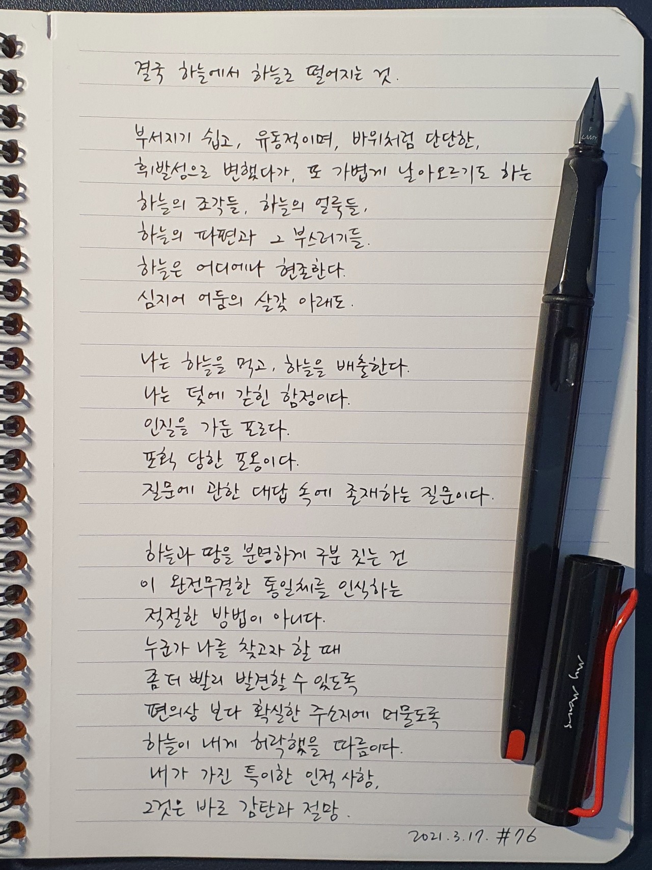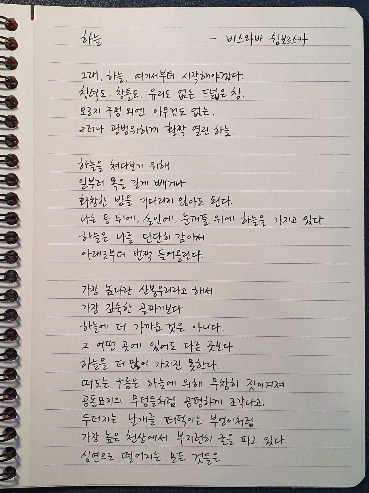 #하늘 #비스와바쉼보르스카 #만년필 #라미 #펜글씨 #손글씨 #시필사 #매일시쓰기 #1일1시 #하루에시한편 #이른아침을먹던여름 #thatsummerwithyou #나의화성 #MyMars