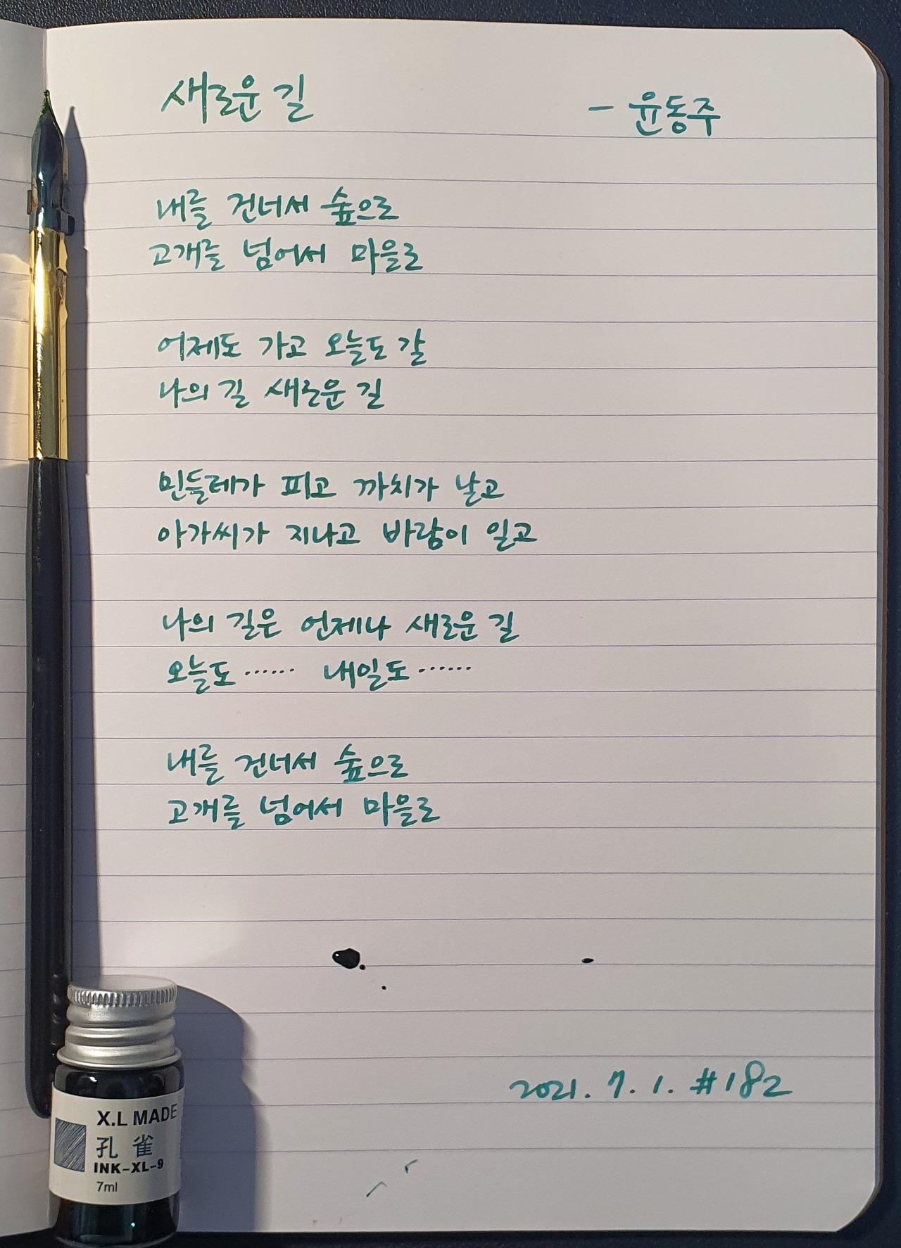 #새로운길 #윤동주 #시필사 #닙펜 #딥펜 #펜글씨 #손글씨 #매일시쓰기 #1일1시 #하루에시한편 #이른아침을먹던여름 #thatsummerwithyou