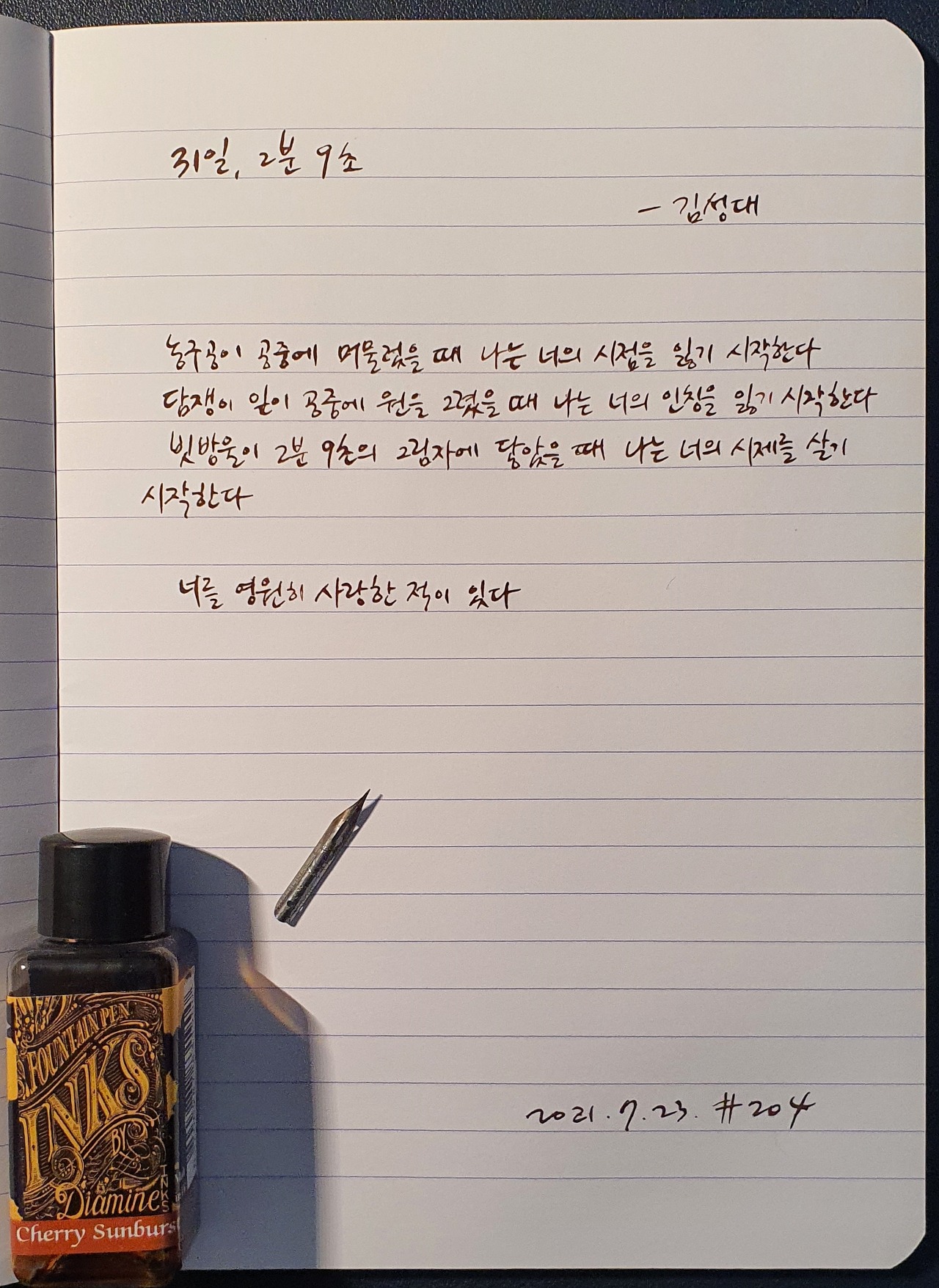 #31일2분9초 #김성대 #시필사 #닙펜 #딥펜 #펜글씨 #손글씨 #매일시쓰기 #1일1시 #하루에시한편 #이른아침을먹던여름 #thatsummerwithyou