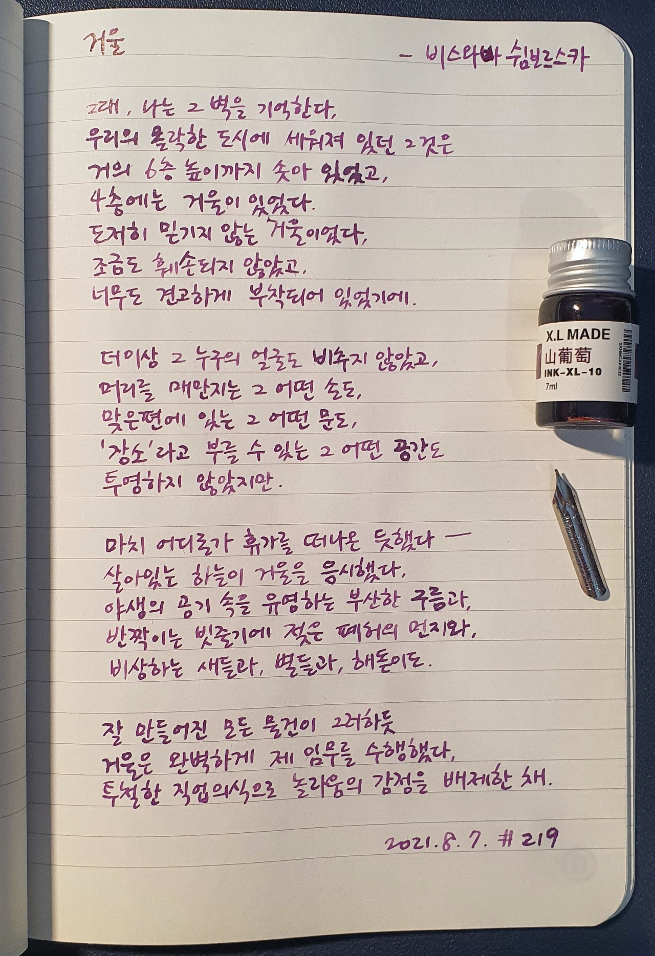 #거울 #비스와바쉼보르스카 #시필사 #닙펜 #딥펜 #펜글씨 #손글씨 #매일시쓰기 #1일1시 #하루에시한편 #이른아침을먹던여름 #thatsummerwithyou