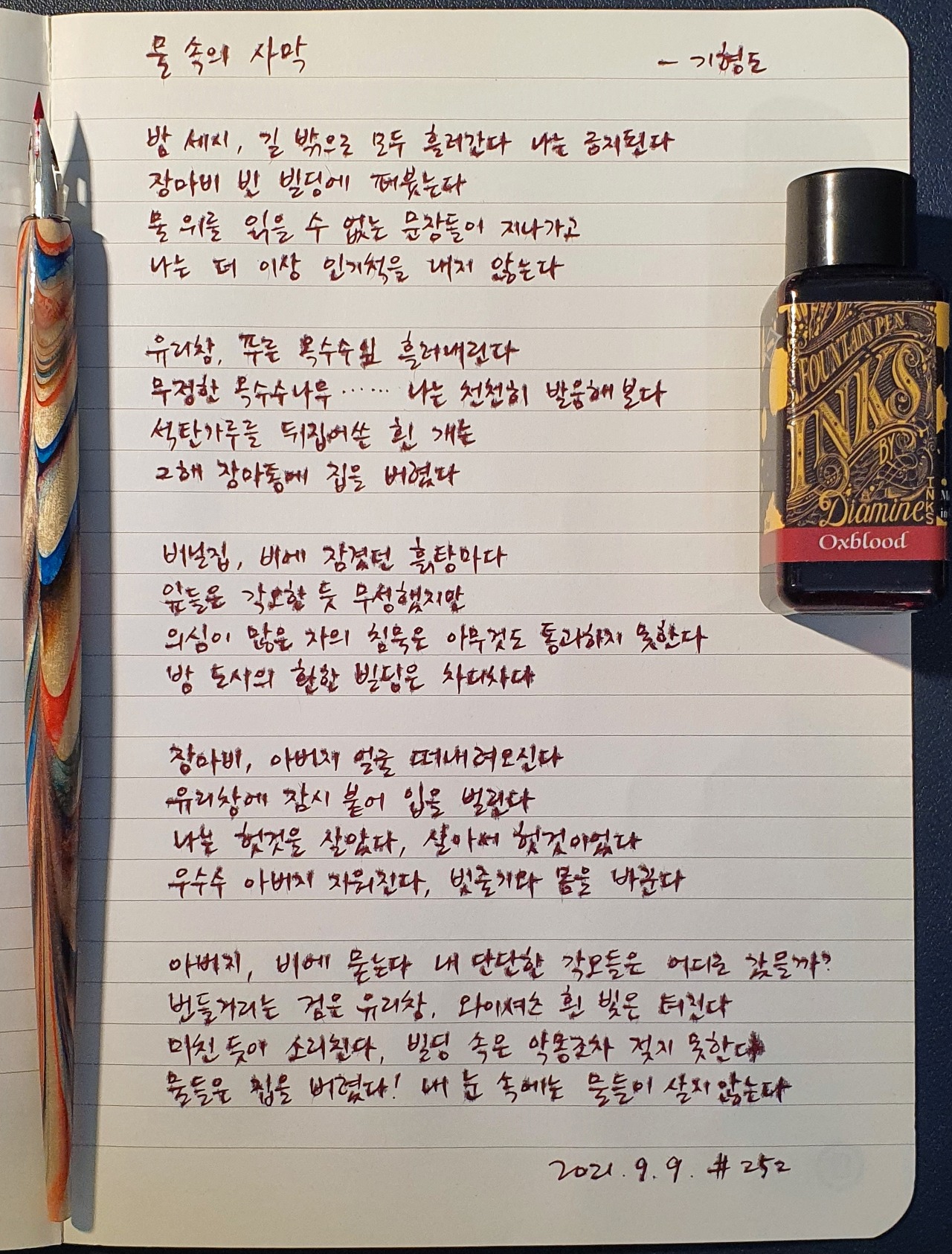 #물속의사막 #기형도 #시필사 #닙펜 #딥펜 #펜글씨 #손글씨 #매일시쓰기 #1일1시 #하루에시한편 #이른아침을먹던여름 #thatsummerwithyou