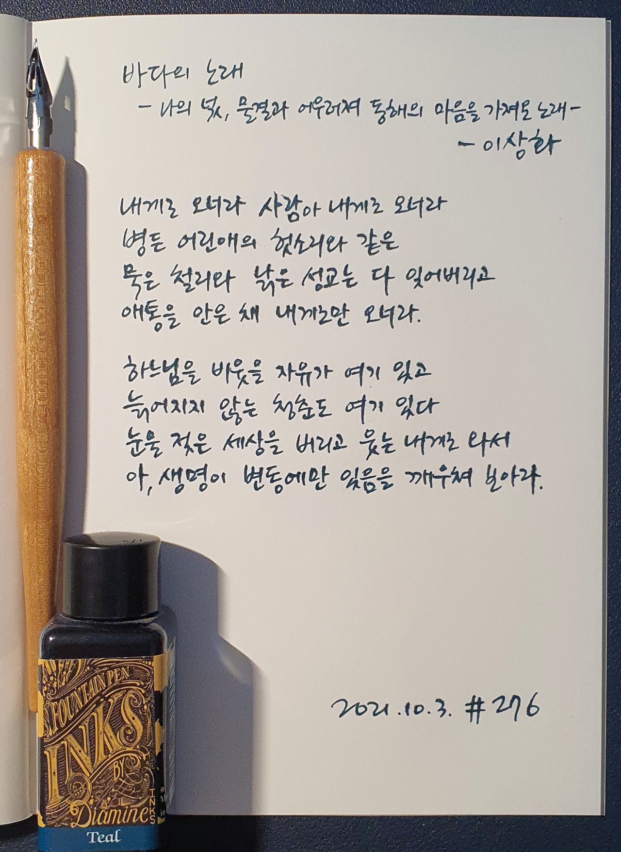 #바다의노래 #이상화 #시필사 #닙펜 #딥펜 #펜글씨 #손글씨 #매일시쓰기 #1일1시 #하루에시한편 #이른아침을먹던여름 #thatsummerwithyou